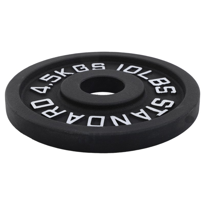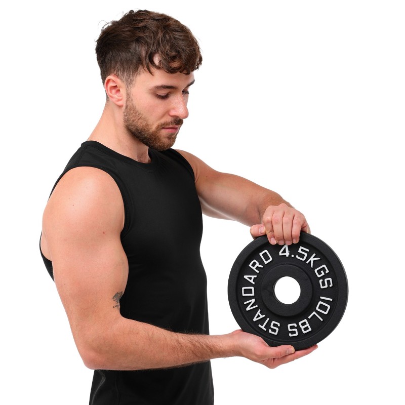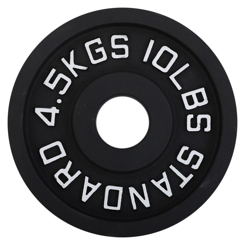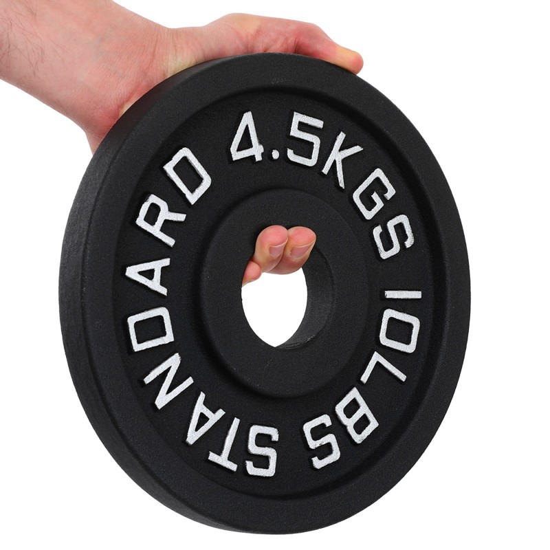 Вага кожного диску становить 4,5 кг, що робить їх ідеальними для поступового збільшення навантаження. Покриті зносостійкою фарбою, яка захищає метал від корозії та зовнішніх пошкоджень, зберігаючи диски у первозданному вигляді протягом тривалого часу. Сталевий матеріал конструкції забезпечує виняткову міцність та довговічність, дозволяючи дискам витримувати інтенсивні тренування. Такі диски підійдуть як для базових вправ, так і для спеціалізованих технік, які підходять спортсменам будь-якого рівня підготовки.