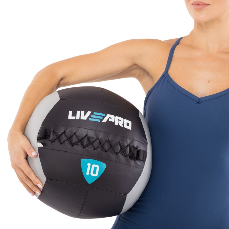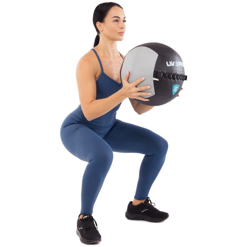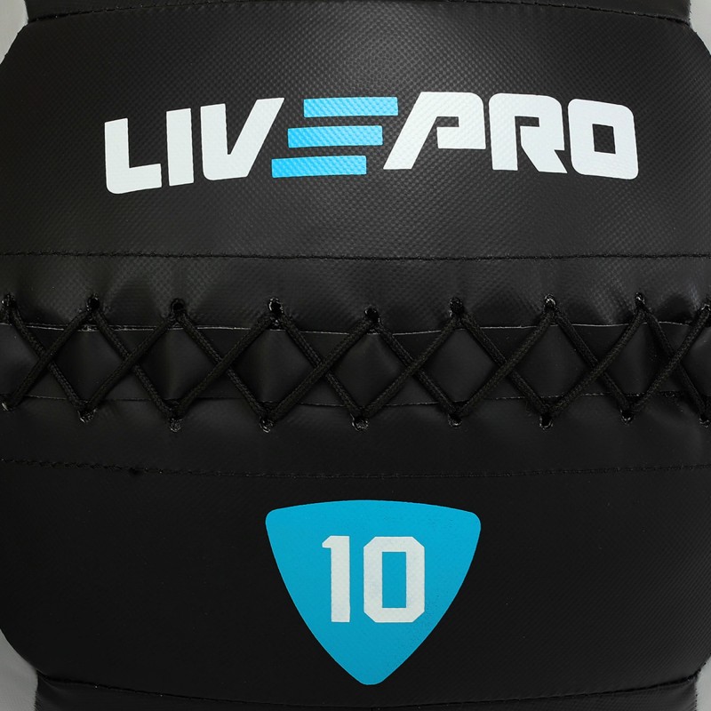 М"яч набивний медичний для кросфіту LiveUp 10кг, чорний-сірий, код: LP8100-10