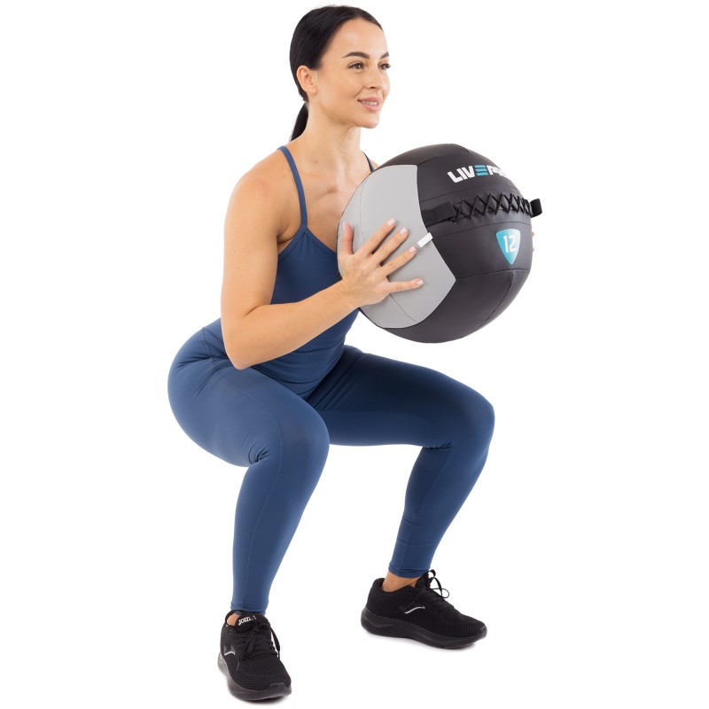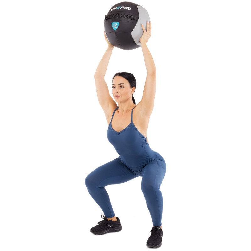 М"яч набивний медичний для кросфіту LiveUp 12кг, чорний-сірий, код: LP8100-12