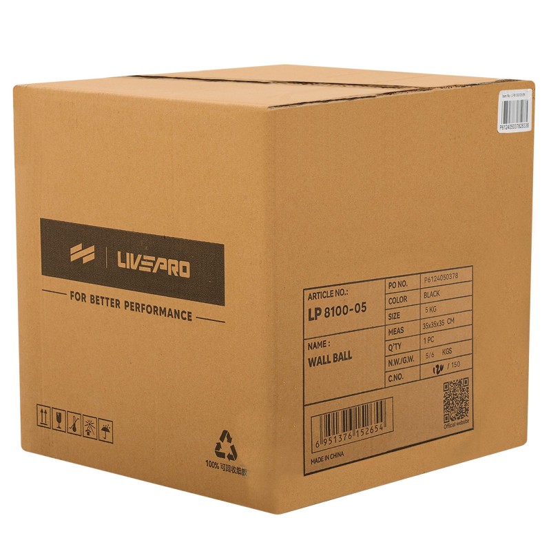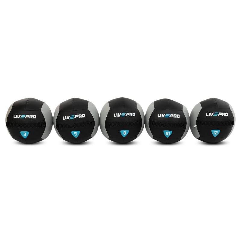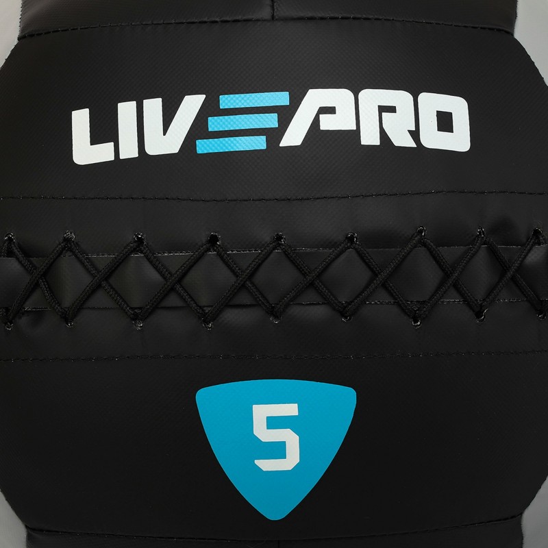 М"яч набивний медичний для кросфіту LiveUp 5кг, чорний-сірий, код: LP8100-5