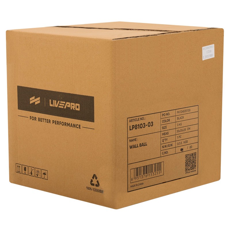 М"яч набивний медичний для кросфіту LiveUp 3кг, чорний, код: LP8103-3