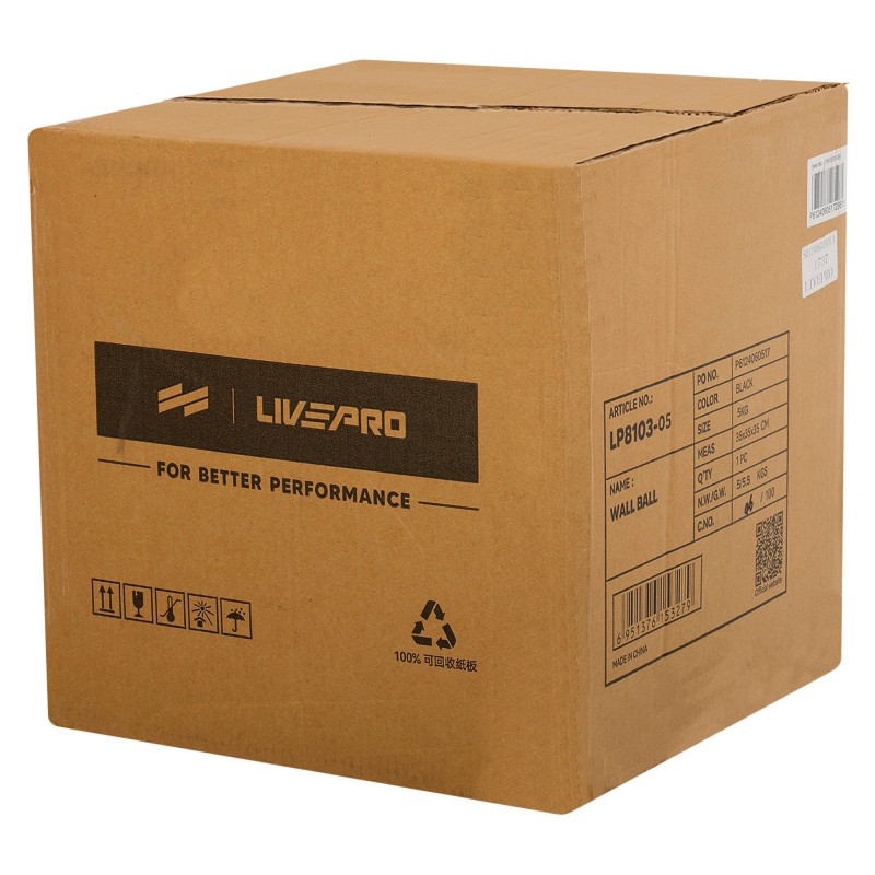 М"яч набивний медичний для кросфіту LiveUp 5кг, чорний, код: LP8103-5