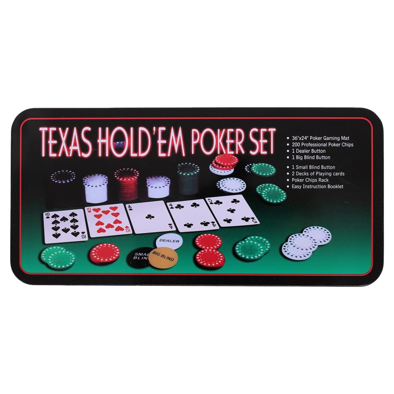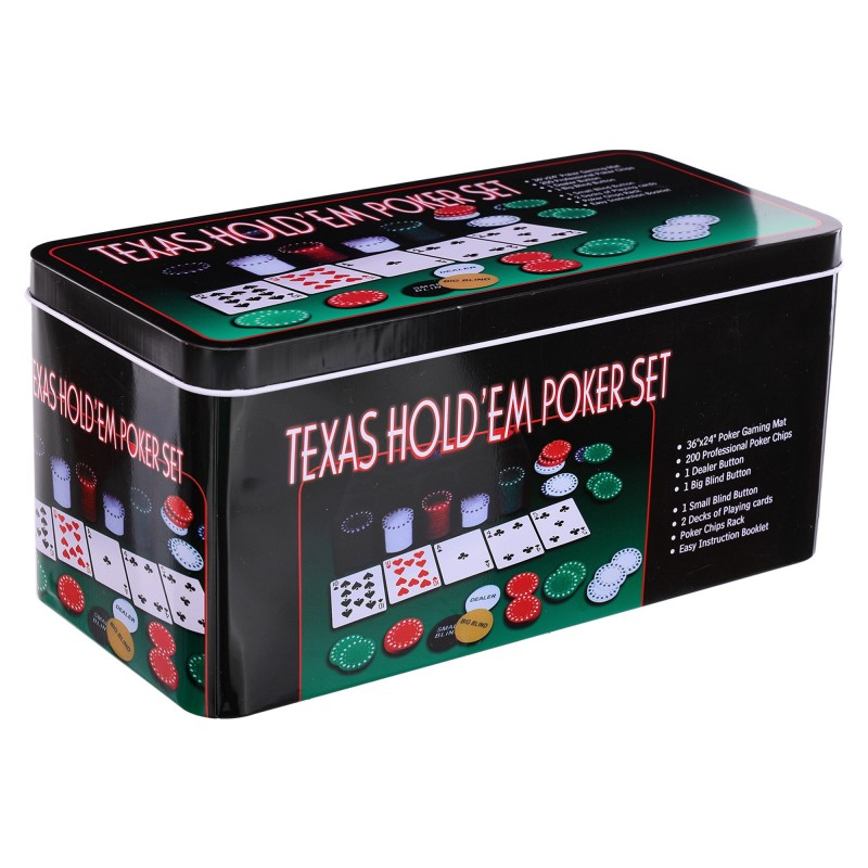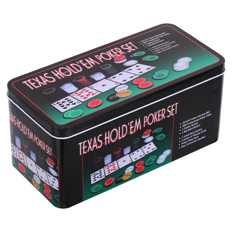 Також у набір входять дві колоди карт, що ідеально підходять для всіх популярних різновидів покеру. Сукно, що входить у комплект, дозволяє створити рівну ігрову поверхню, забезпечуючи легкість переміщення карт і фішок. Все це упаковано в компактну та міцну металеву коробку, яка захищає набір та дозволяє зручно зберігати чи транспортувати його.