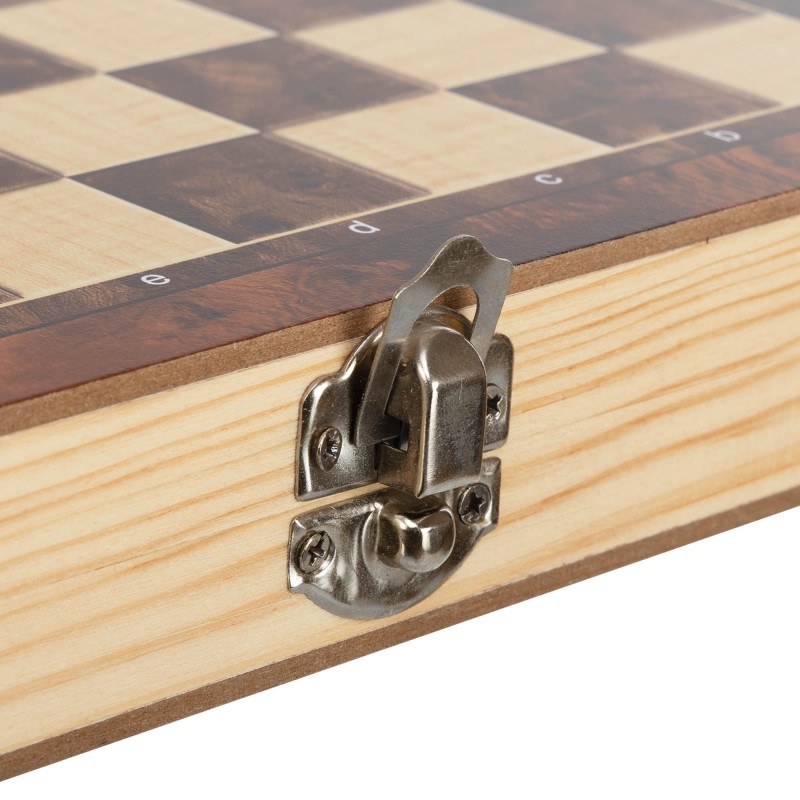- Фігури та дошка виготовлені з дерева, що забезпечує їх міцність та довговічність.