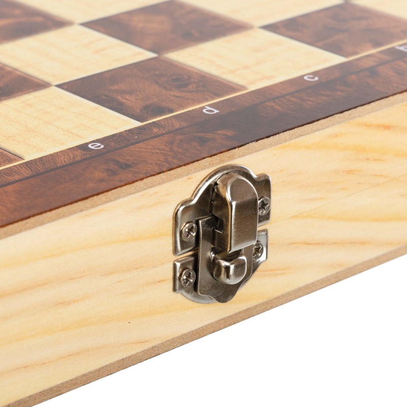 Набір ігор Xinliye W7722B відкриває перед гравцями широкий спектр можливостей. Ігрова дошка, виготовлена з дерева, має універсальний дизайн: одна сторона призначена для шахів та шашок, а інша для гри в нарди. Завдяки цьому вам не потрібно шукати окремі комплекти для кожної гри — все зібрано в одному традиційному і компактному наборі. Розмір дошки становить 29 х 29 см, що забезпечує достатній простір для комфортної гри, а товщина 4 см надає їй стійкості та надійності.