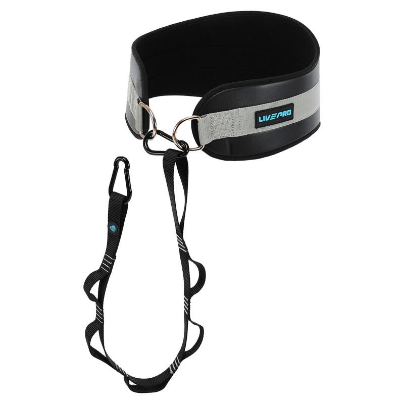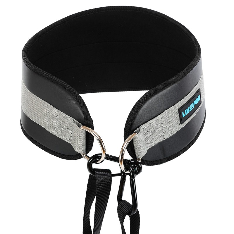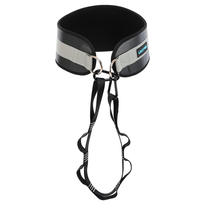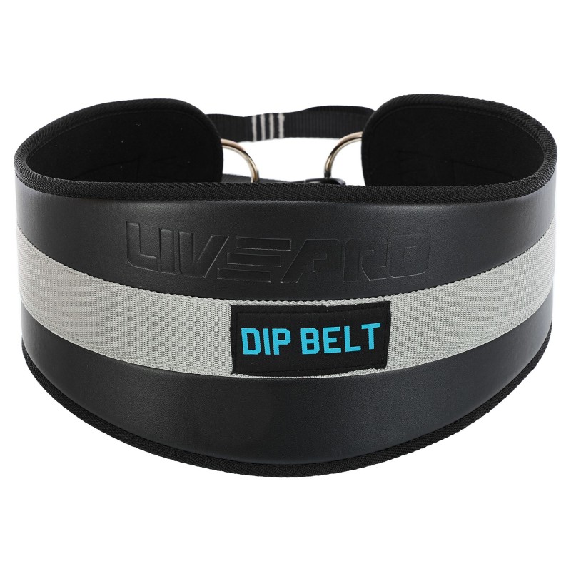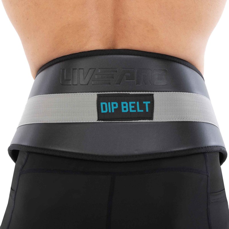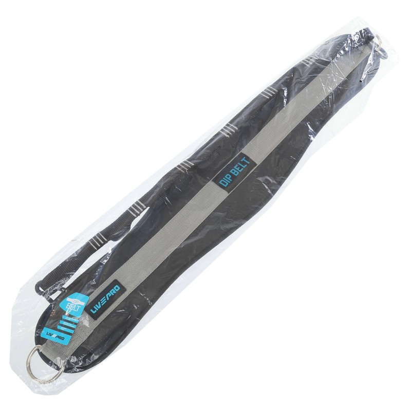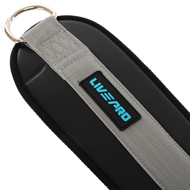 Пояс атлетичний для обтяження композитна шкіра зі стропою та карабіном LiveUp спинка-19см, чорний-сірий, код: LP8098