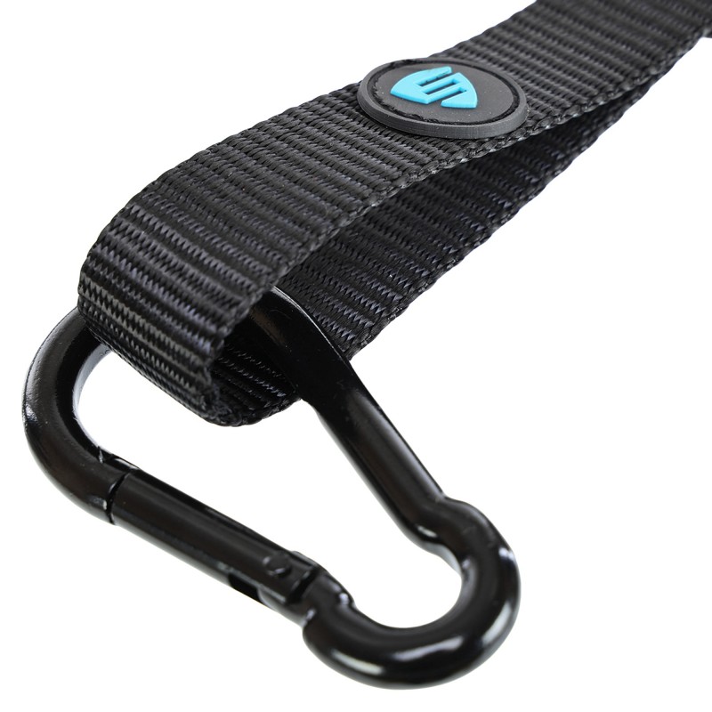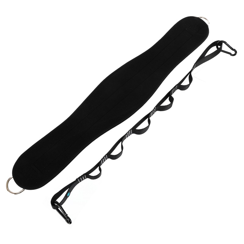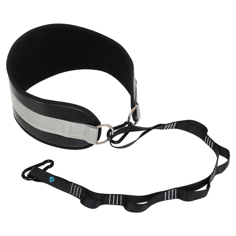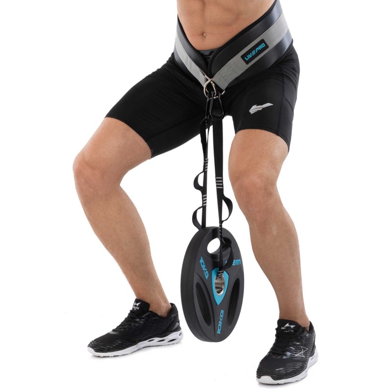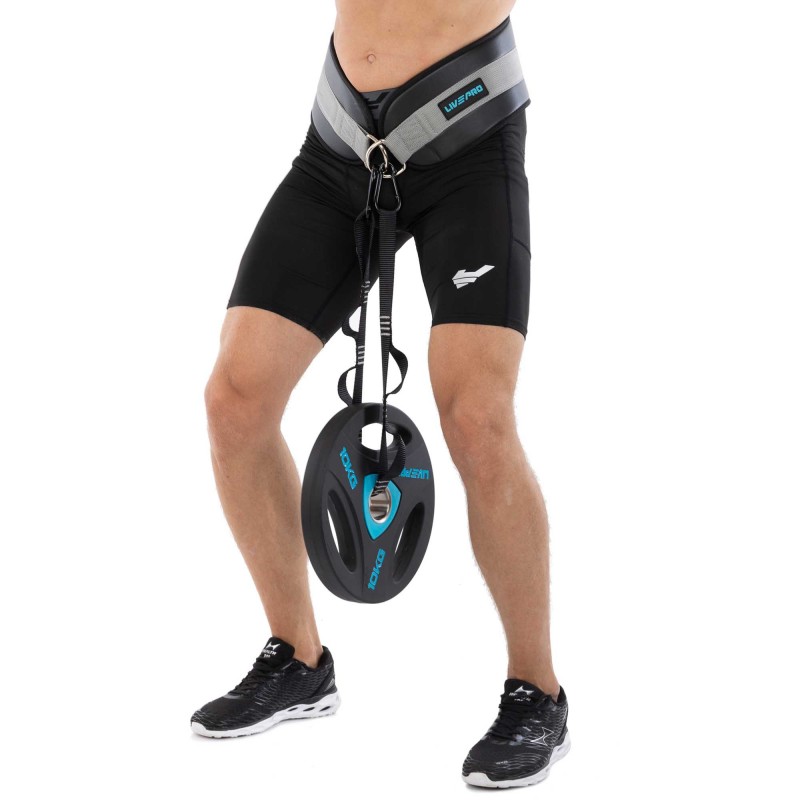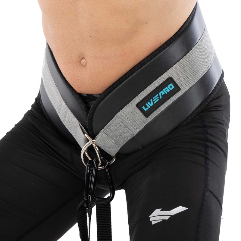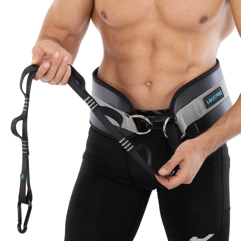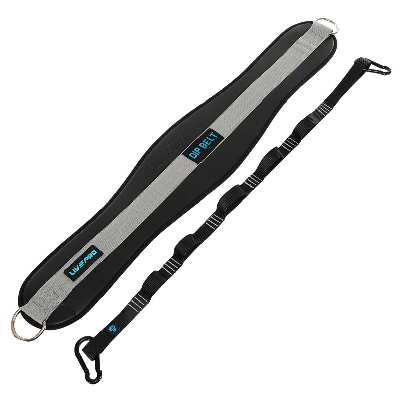 Пояс атлетичний для обтяження композитна шкіра зі стропою та карабіном LiveUp спинка-19см, чорний-сірий, код: LP8098