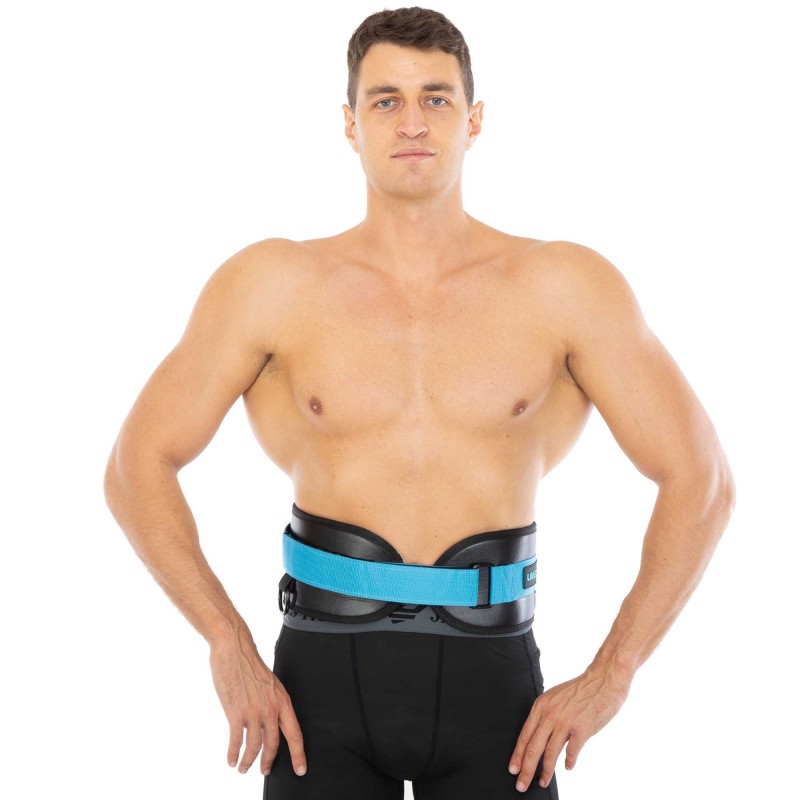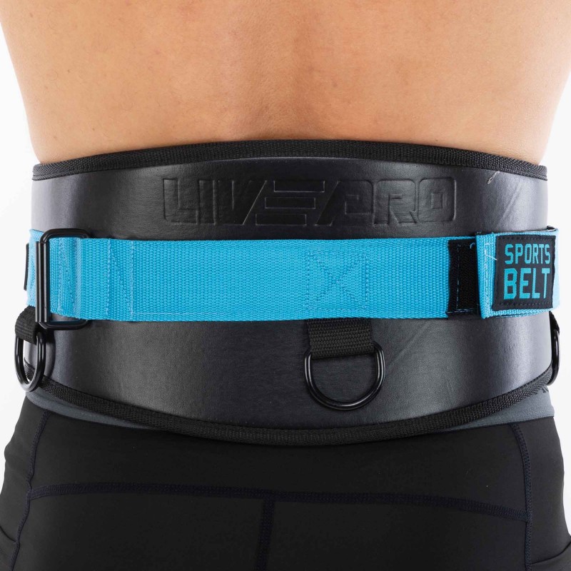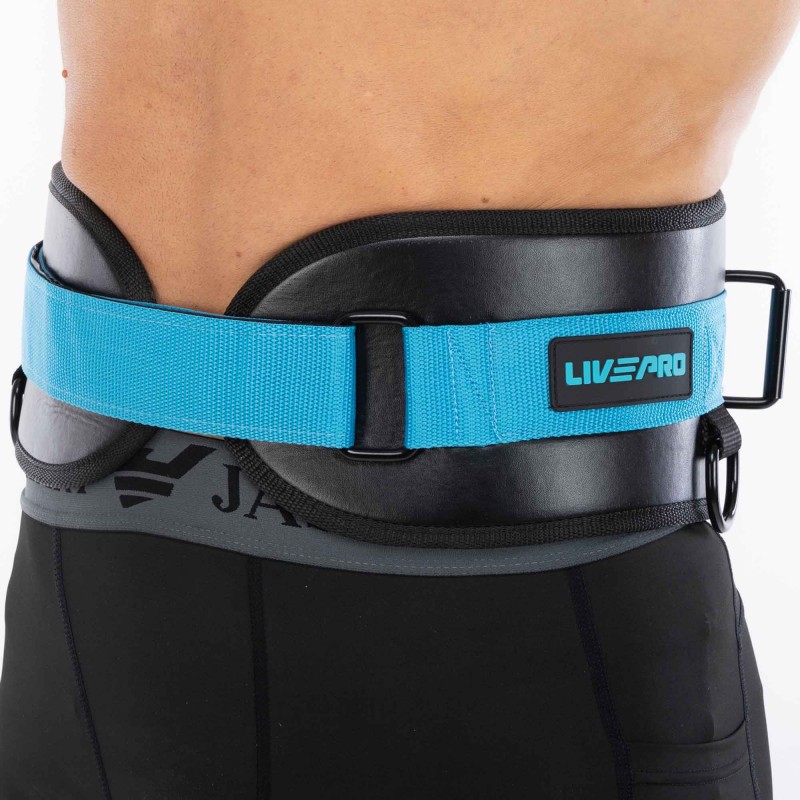 Пояс атлетичний текстильний LiveUp спинка-18см, чорний-синій, код: LP8094