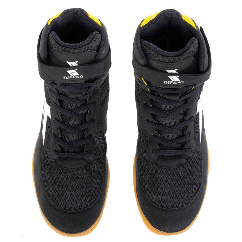 Борцовки Wrestling DIFENO W-2005-7 є сучасним спортивним взуттям, розробленим з урахуванням високої інтенсивності навантажень і специфіки борцівських рухів. Вони виконані з якісних матеріалів, які забезпечують відмінну посадку на нозі та надійне зчеплення з поверхнею. Верхня частина з поліуретану та поліестеру доповнюється вставками з вентильованої дихаючої тканини, що сприяє оптимальній вентиляції, запобігаючи перегріву та дискомфорту навіть при тривалих тренуваннях.