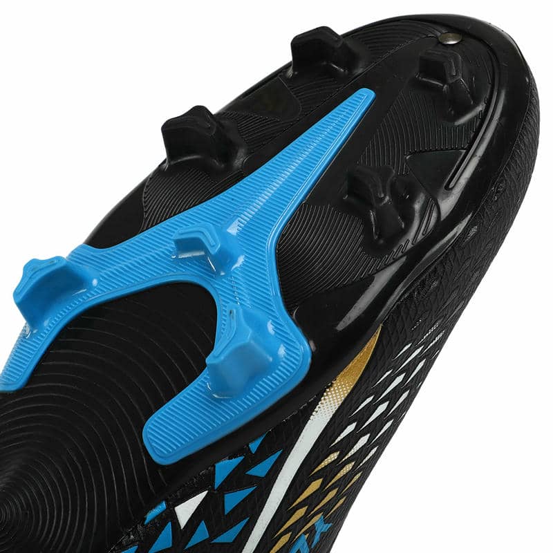 Підошва з термополіуретану (TPU) відрізняється високою міцністю і пружністю, що сприяє відмінному зчепленню з натуральним газоном і запобігає ковзанню. Конструкція підошви включає стратегічно розташовані шипи, які покращують зчеплення та маневреність. Ці шипи розміщені так, щоб забезпечити рівномірний розподіл навантаження та підтримувати стабільність при різких поворотах та зміні напрямку. Це робить бутси особливо зручними при виконанні швидких та динамічних рухів на полі.