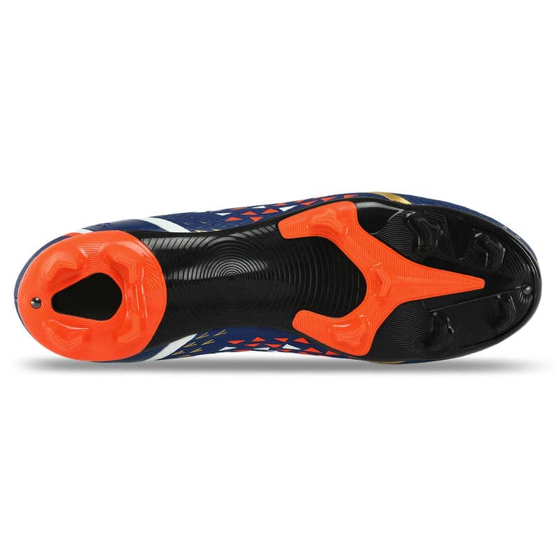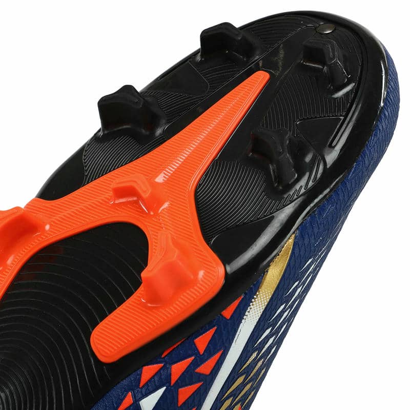 Підошва з термополіуретану (TPU) відрізняється високою міцністю і пружністю, що сприяє відмінному зчепленню з натуральним газоном і запобігає ковзанню. Конструкція підошви включає стратегічно розташовані шипи, які покращують зчеплення та маневреність. Ці шипи розміщені так, щоб забезпечити рівномірний розподіл навантаження та підтримувати стабільність при різких поворотах та зміні напрямку. Це робить бутси особливо зручними при виконанні швидких та динамічних рухів на полі.