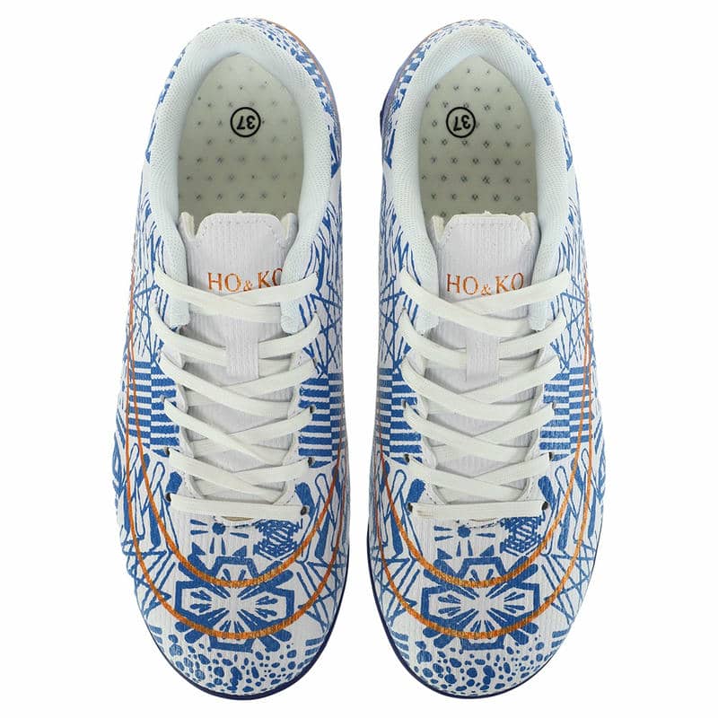 Футбольні сороконіжки HO&KO - незамінне екіпірування для гри на ґрунтовому покритті або ковроліні. Дитячі сороконіжки мають яскравий дизайн, який точно вразить юного футболіста і мотивує його ще більше займатися спортом. Крім яскравого дизайну, взуття для гри у футбол на ґрунті забезпечує максимальний комфорт і оптимальне зчеплення з покриттям поля. Це досягається завдяки використанню якісної та довговічної гуми для виготовлення підошви. Верх взуття виготовлено з поліуретану - міцного синтетичного матеріалу, який мало в чому поступається натуральній шкірі. Підігнати взуття за посадкою дає змогу шнурівка. Футбольні сороконіжки адаптуються до ніг юного спортсмена, не перевантажуючи стопи.