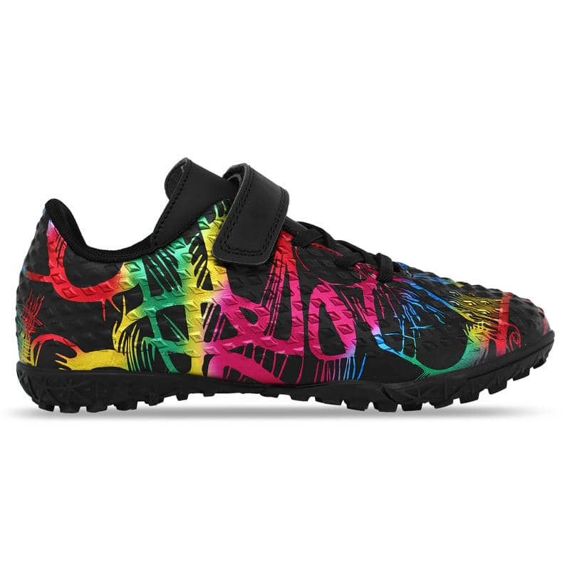 Підошва взуття виготовлена з гуми (RB), яка не тільки стійка до стирання, але й сприяє відмінному зчепленню з різними видами поверхні. Розроблена спеціально для гри на ґрунтових полях та ковроліні, ця підошва забезпечена невеликими шипами, які дозволяють впевнено маневрувати на полі, гарантуючи стабільність та запобігаючи ковзанню. Така конструкція допомагає юним спортсменам зберігати баланс навіть на найскладніших ділянках ігрового поля, мінімізуючи ризик травм та сприяючи покращенню техніки гри.