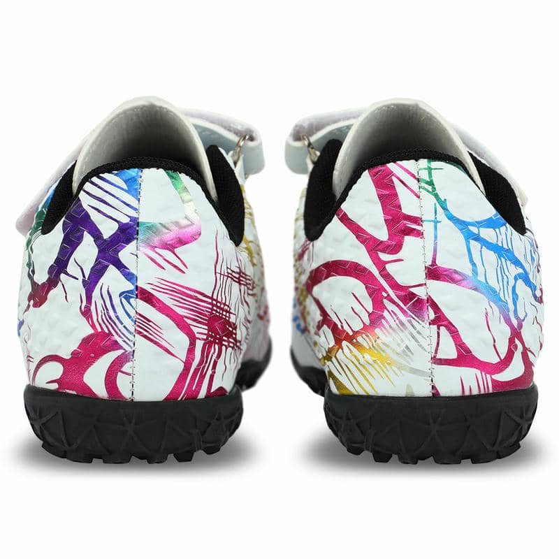 Підошва взуття виготовлена ​​з гуми (RB), яка не тільки стійка до стирання, але й сприяє відмінному зчепленню з різними видами поверхні. Розроблена спеціально для гри на ґрунтових полях та ковроліні, ця підошва забезпечена невеликими шипами, які дозволяють впевнено маневрувати на полі, гарантуючи стабільність та запобігаючи ковзанню. Така конструкція допомагає юним спортсменам зберігати баланс навіть на найскладніших ділянках ігрового поля, мінімізуючи ризик травм та сприяючи покращенню техніки гри.