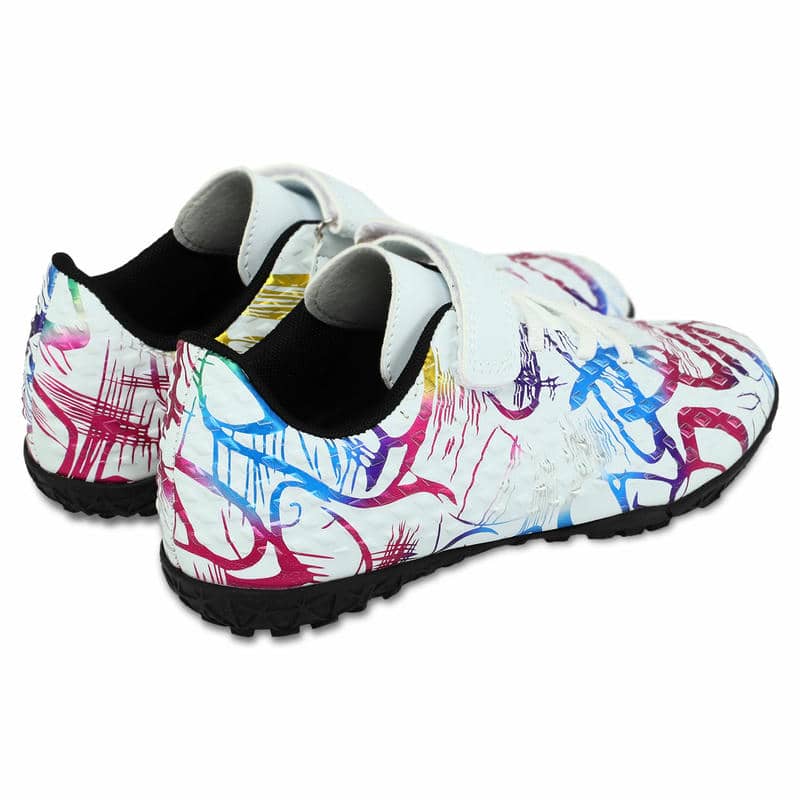 Підошва взуття виготовлена з гуми (RB), яка не тільки стійка до стирання, але й сприяє відмінному зчепленню з різними видами поверхні. Розроблена спеціально для гри на ґрунтових полях та ковроліні, ця підошва забезпечена невеликими шипами, які дозволяють впевнено маневрувати на полі, гарантуючи стабільність та запобігаючи ковзанню. Така конструкція допомагає юним спортсменам зберігати баланс навіть на найскладніших ділянках ігрового поля, мінімізуючи ризик травм та сприяючи покращенню техніки гри.