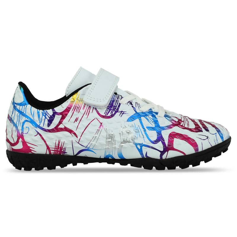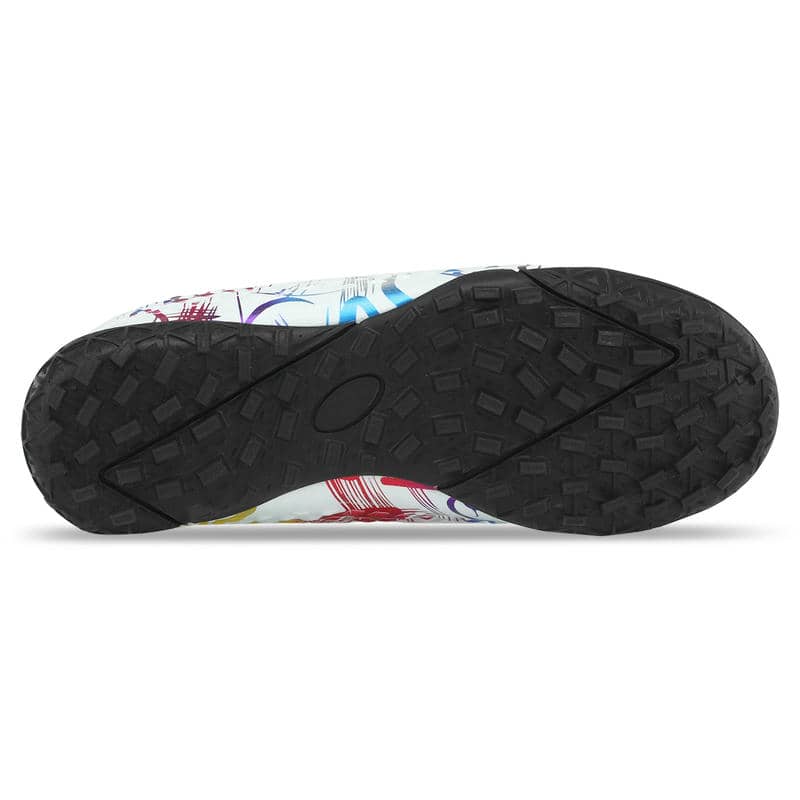 Підошва взуття виготовлена ​​з гуми (RB), яка не тільки стійка до стирання, але й сприяє відмінному зчепленню з різними видами поверхні. Розроблена спеціально для гри на ґрунтових полях та ковроліні, ця підошва забезпечена невеликими шипами, які дозволяють впевнено маневрувати на полі, гарантуючи стабільність та запобігаючи ковзанню. Така конструкція допомагає юним спортсменам зберігати баланс навіть на найскладніших ділянках ігрового поля, мінімізуючи ризик травм та сприяючи покращенню техніки гри.