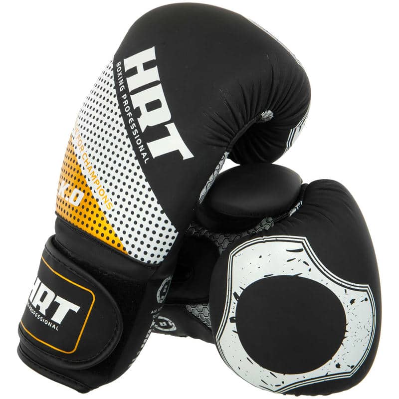 Боксерські рукавиці Hard Touch 12 унцій, чорний-золотий, код: BO-8469_12BKGO