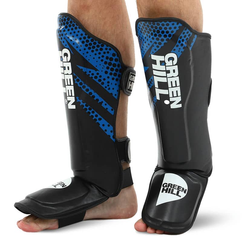 Захист гомілки та стопи дитячий Муай Тай, Кікбоксинг GreenHill L, чорний-синій, код: GH068_LBKBL