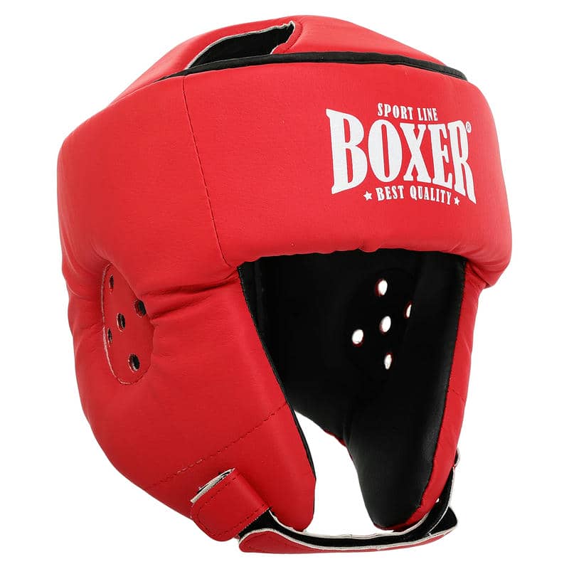 Шолом боксерський відкритий з посиленим захистом верхівки шкірозамінник Boxer M, червоний, код: 2030-N_MR