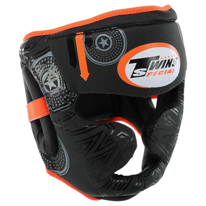 Шолом боксерський з повним захистом Twins PVC S, чорний-помаранчевий, код: BO-9481_SOR