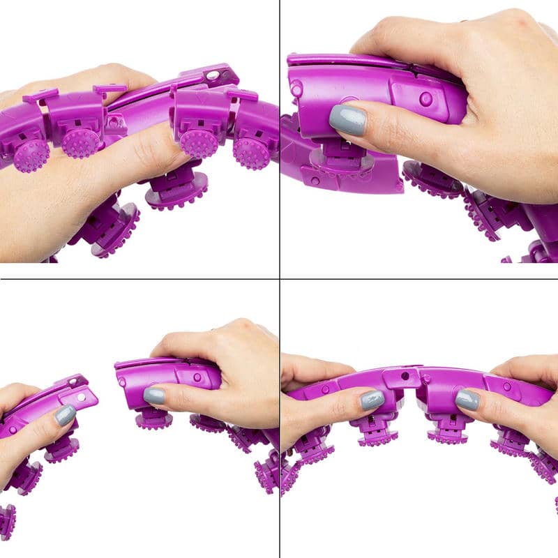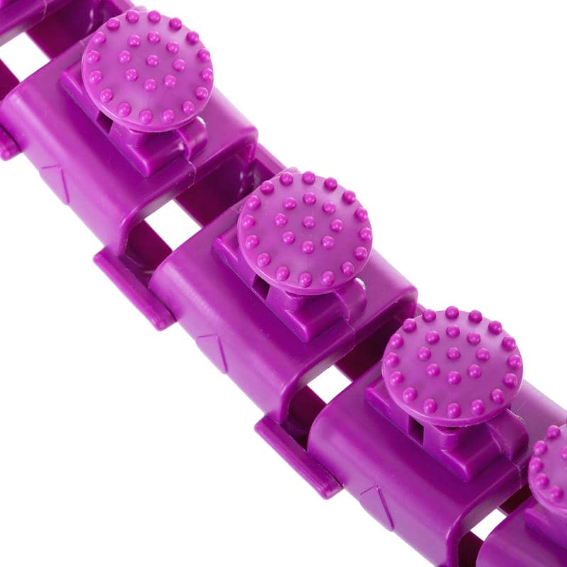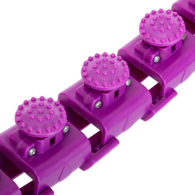 Основна особливість моделі – це його розбірна конструкція із 23 секцій. Це дозволяє легко налаштовувати розмір обруча під індивідуальні параметри користувача. Внутрішній діаметр можна регулювати від 17 до 35 см, що робить модель універсальною для людей різної комплекції. Зручна розбірна система дозволяє швидко зібрати або розібрати обруч для зберігання чи транспортування.