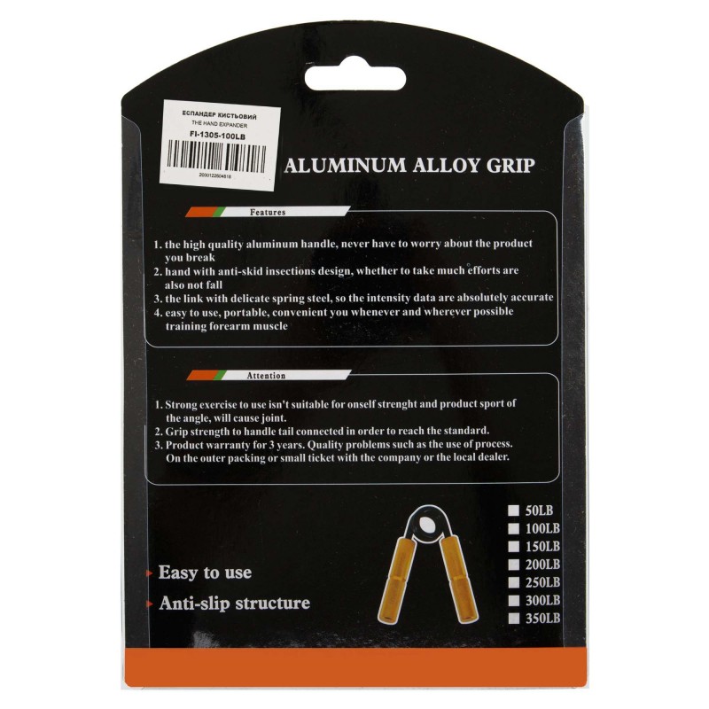 Ця модель відрізняється високим рівнем навантаження - 100LB (45 кг), що робить її ідеальною для просунутих користувачів. Кістовий еспандер створює суттєвий опір, змушуючи м'язи працювати з максимальною віддачею. Виготовлений із високоякісного металу, що гарантує довговічність та надійність виробу. Регулярні тренування з таким еспандером допоможуть значно покращити силу хвату, що є ключовим для багатьох видів спорту та силових вправ.