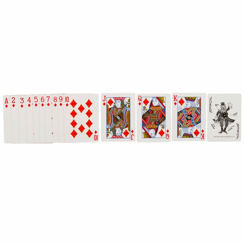 Карти мають стандартні розміри та форму, зручні для рук, що полегшує перемішування та роздачу. Нанесення символів та мастей на лицьовій стороні виконано чіткими фарбами, які стійкі до стирання та довго зберігають свій первісний зовнішній вигляд. Зворотний бік оформлений у класичному дизайні, який підходить для використання на будь-яких ігрових столах і надає колоді елегантного вигляду.