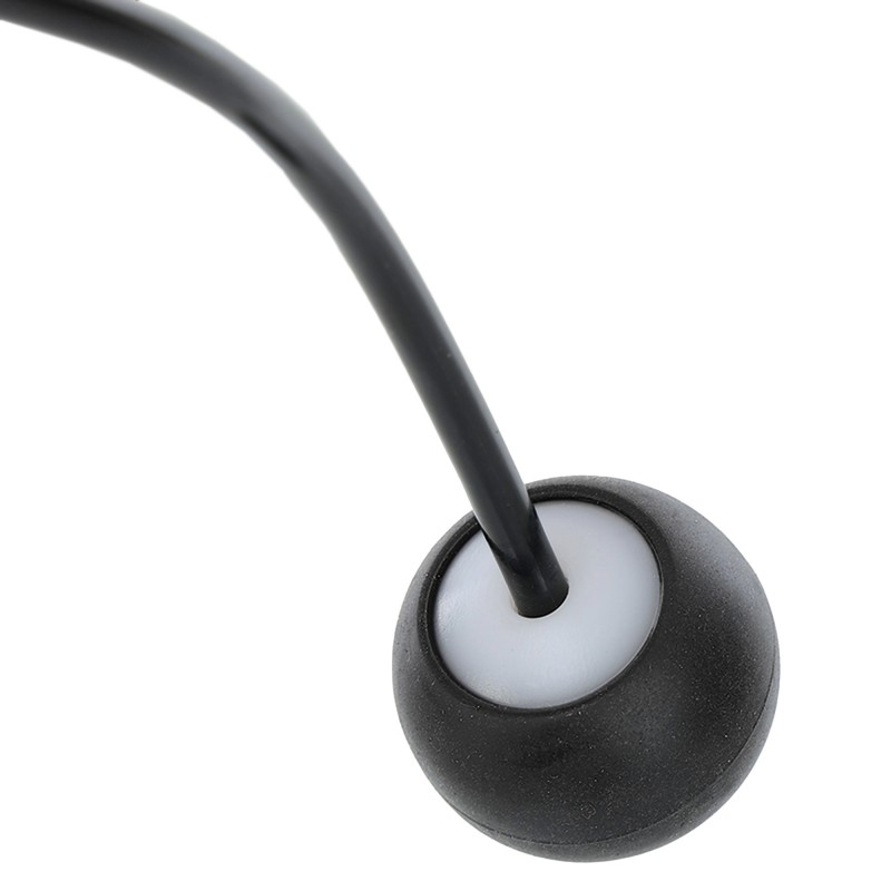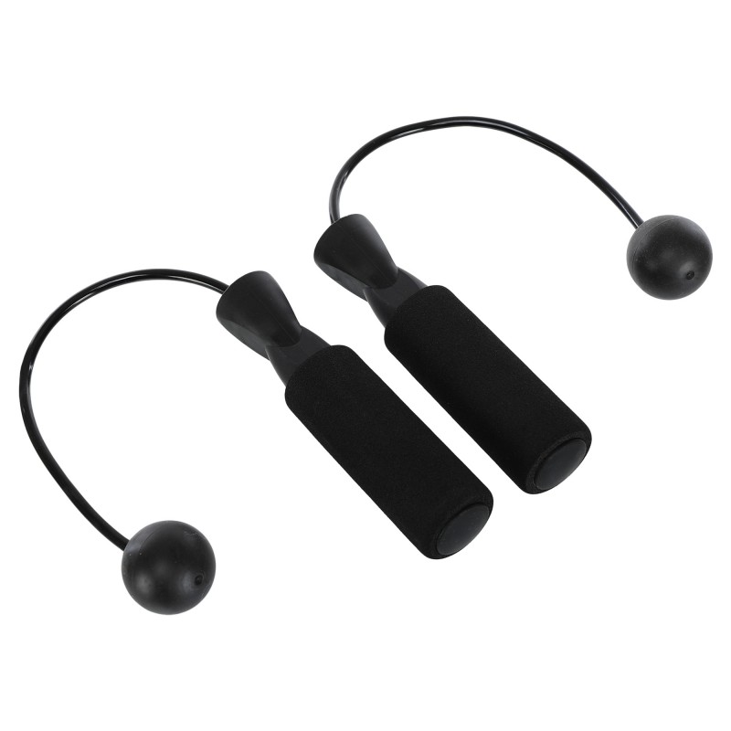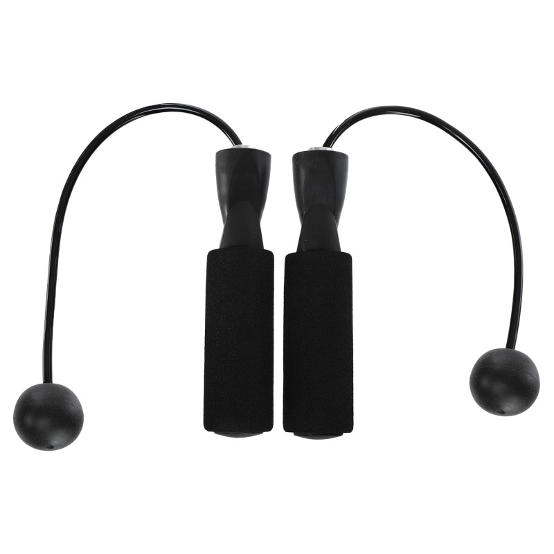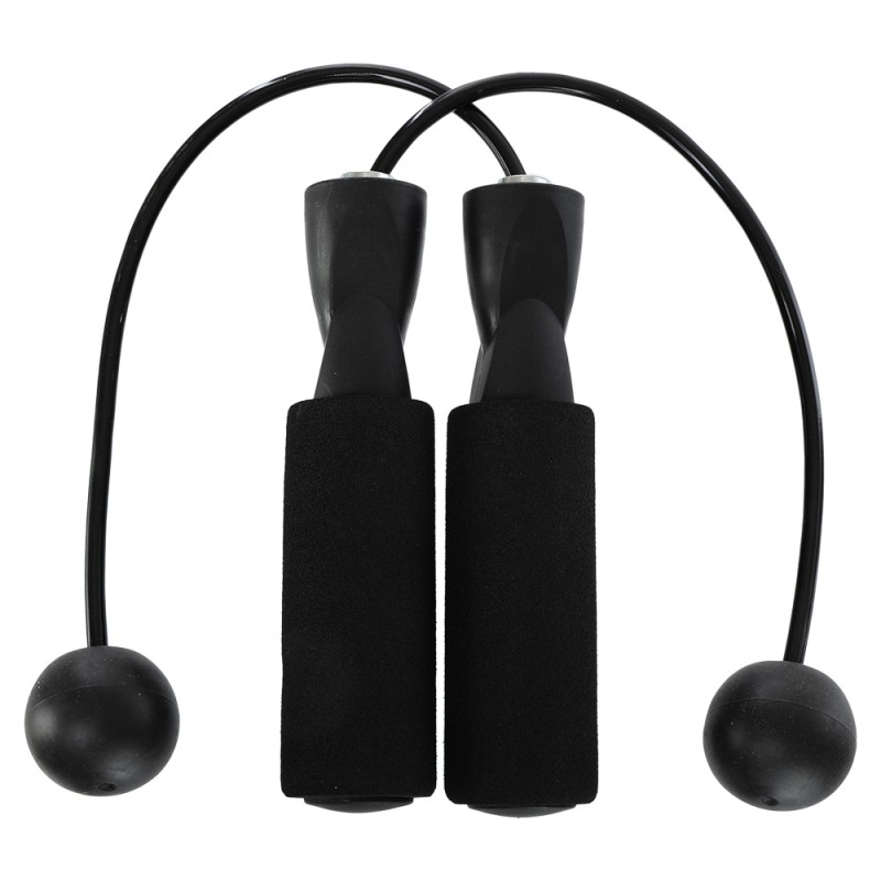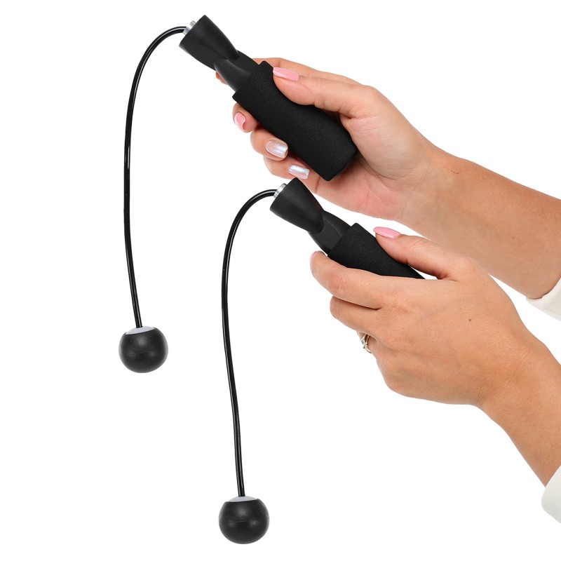 Скакалка бездротова з кулями — безшумний спортивний аксесуар, що дає змогу виконувати кардіо тренування в обмеженому просторі. Конструкція виробу складається з довгих ручок зручної форми та коротких джгутів з кулями на кінцях. Ергономічні ручки мають покриття з нековзного матеріалу і забезпечують комфортний і надійний хват протягом усього тренування. Завдяки двом кулькам на коротких джгутах створюється відчуття обертання, що дає змогу імітувати стрибки. Швидке і плавне обертання гарантують підшипники, розташовані всередині ручок. Відсутність довгого джгута робить скакалку дуже компактною і дає змогу використовувати її в будь-якому приміщенні без страху зачепити меблі або предмети інтер'єру.