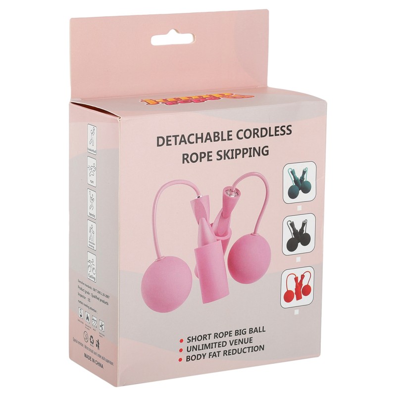 На відміну від традиційних моделей, бездротова скакалка складається тільки з ручок і обтяжених куль на коротких джгутах. Аксесуар захищений від намотування джгута, поверхня ручок і куль виготовлена з матеріалу, стійкого до утворення подряпин і механічних пошкоджень.