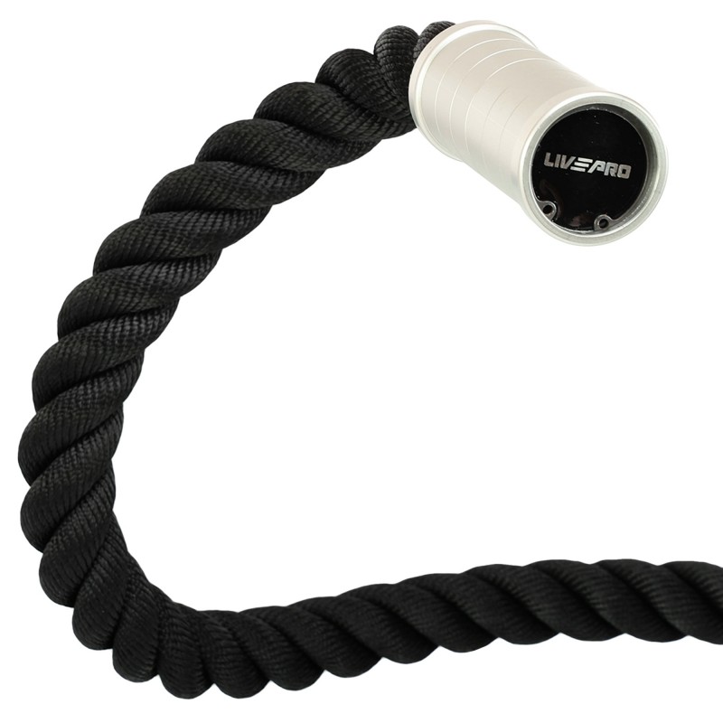 Канат для кросфіту Combat Battle Rope LiveUp з алюмінієвою ручкою - це спортивний інструмент для розвитку швидкості, витривалості та сили спортсмена. Універсальний снаряд дає змогу виконувати динамічні тренування на різні групи м'язів рук, ніг і корпусу.