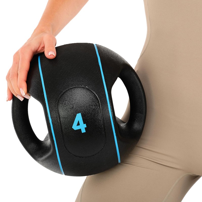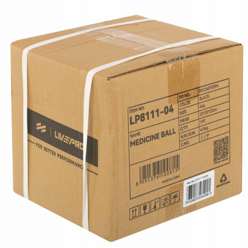 Медбол м"яч медичний дворучний з хватами LiveUp Medicine Ball 4кг, чорний, код: LP8111-4