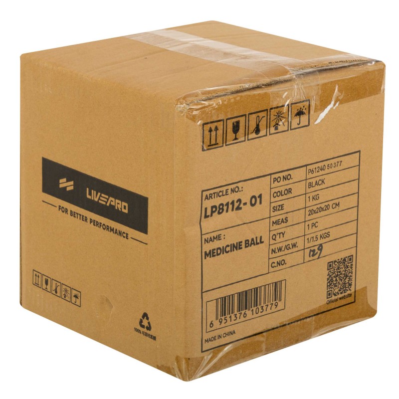 М"яч медичний медбол Medicine Ball LiveUp 1 кг, чорний-синій, код: LP8112-1