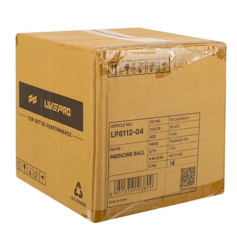 М"яч медичний медбол Medicine Ball LiveUp 4 кг, чорний-синій, код: LP8112-4