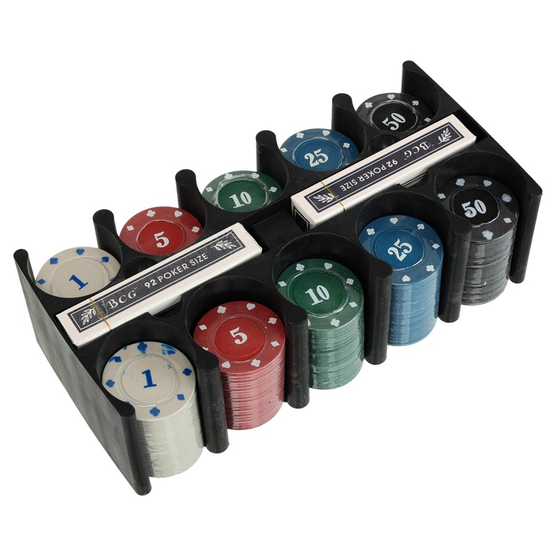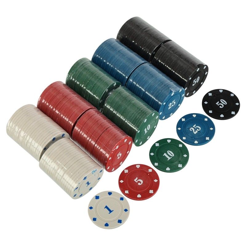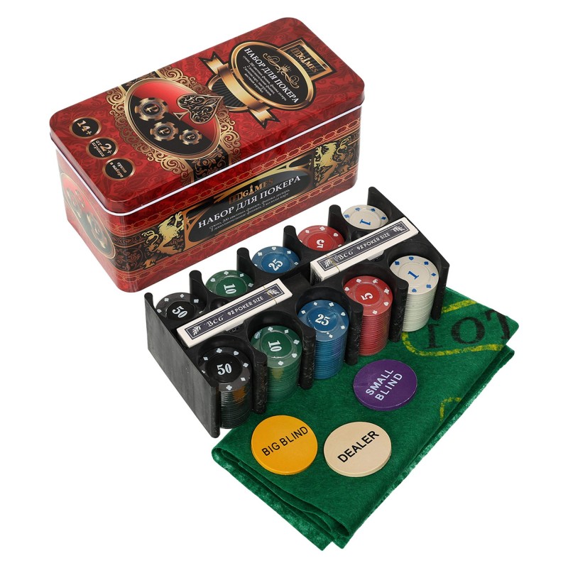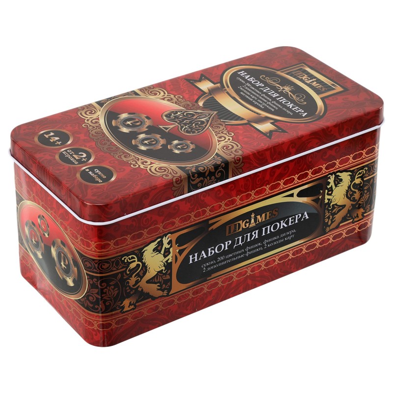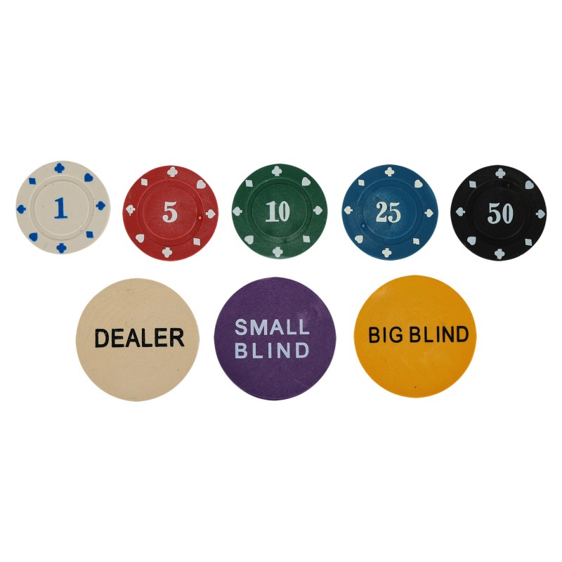 Основним елементом набору є фішки, розділені за кольорами. З їхньою допомогою гравці можуть позначити свої ставки, контролювати ігровий банк, виграші та втрати. Усі фішки відкалібровані за вагою та розміром. Діаметр фішки становить 39 мм, вага - 4 г. Фішка дилера позначає людину, яка здає карти. Крім того, ігровий набір містить два блайнди: "Малий блайнд" (Small Blind) і "Великий блайнд" (Big Blind). Ці фішки дають змогу гравцям, які сидять ліворуч від дилера, робити ставку наосліп, відкриваючи тим самим ігровий банк. Набір поміщений у металеву коробку і стане чудовим подарунком для любителів покеру і тих, хто небайдужий до азартних ігор.