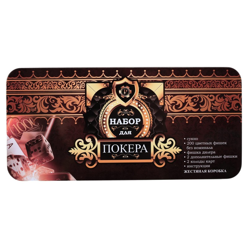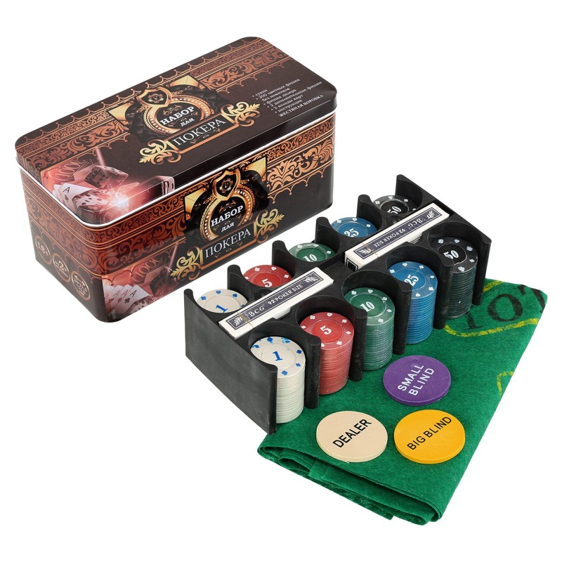 Основним елементом набору є фішки, розділені за кольорами. З їхньою допомогою гравці можуть позначити свої ставки, контролювати ігровий банк, виграші та втрати. Усі фішки відкалібровані за вагою та розміром. Діаметр фішки становить 39 мм, вага - 4 г. Фішка дилера позначає людину, яка здає карти. Крім того, ігровий набір містить два блайнди: "Малий блайнд" (Small Blind) і "Великий блайнд" (Big Blind). Ці фішки дають змогу гравцям, які сидять ліворуч від дилера, робити ставку наосліп, відкриваючи тим самим ігровий банк. Набір поміщений у металеву коробку і стане чудовим подарунком для любителів покеру і тих, хто небайдужий до азартних ігор.