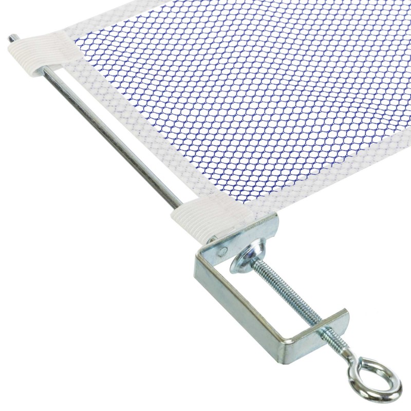 Матеріали виробу підкреслюють його довговічність та надійність. Сітка виготовлена з міцного нейлону, який стійкий до зношування та зберігає свої властивості при тривалому використанні. Металеві кріплення мають антикорозійне покриття, що робить їх ідеальними для довгострокової експлуатації. Розміри (168х14 см) повністю відповідають стандартам та забезпечують сумісність з більшістю столів.