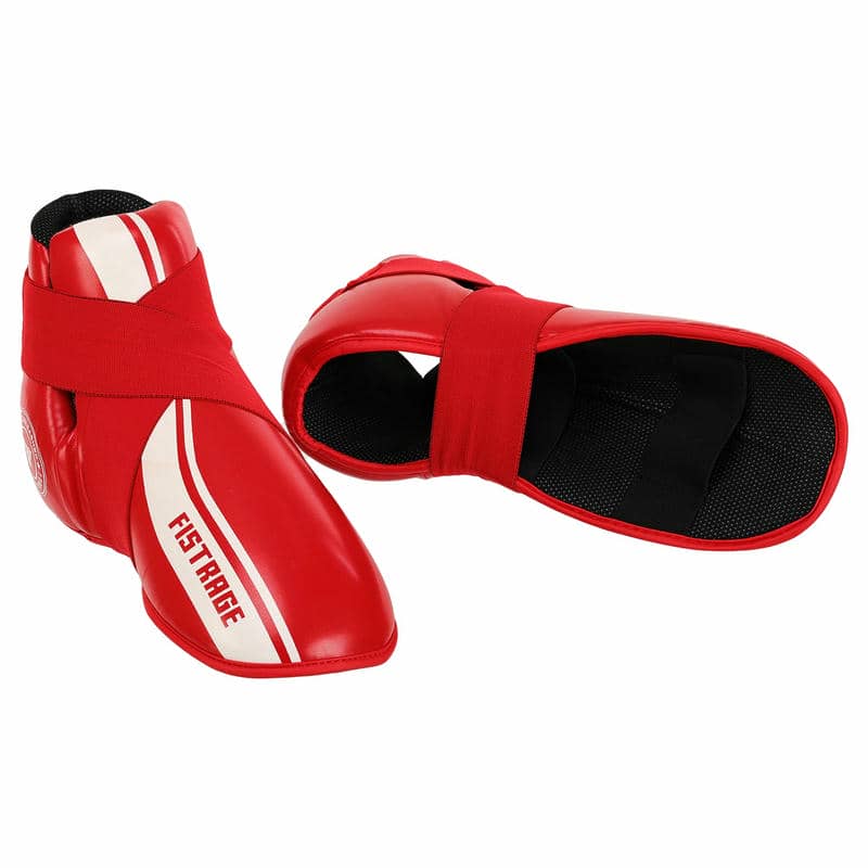 Цей захисний елемент екіпірування зроблений із міцного, стійкого до зношування та деформацій поліуретану (PU). Набивання виготовлене з пінополіуретану високої щільності, який розсіює та поглинає енергію удару, тим самим оберігаючи ногу бійця від пошкоджень. Кріплення є широкою еластичною стрічкою із застібкою на липучці, яка за рахунок своєї пружності щільно охоплює щиколотку і не дає футу зміщуватися. Додаткову фіксацію забезпечують еластичні ремінці для пальців.