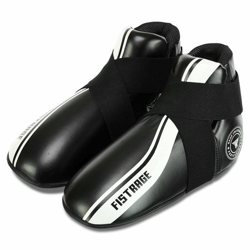 Цей захисний елемент екіпірування зроблений із міцного, стійкого до зношування та деформацій поліуретану (PU). Набивання виготовлене з пінополіуретану високої щільності, який розсіює та поглинає енергію удару, тим самим оберігаючи ногу бійця від пошкоджень. Кріплення є широкою еластичною стрічкою із застібкою на липучці, яка за рахунок своєї пружності щільно охоплює щиколотку і не дає футу зміщуватися. Додаткову фіксацію забезпечують еластичні ремінці для пальців.