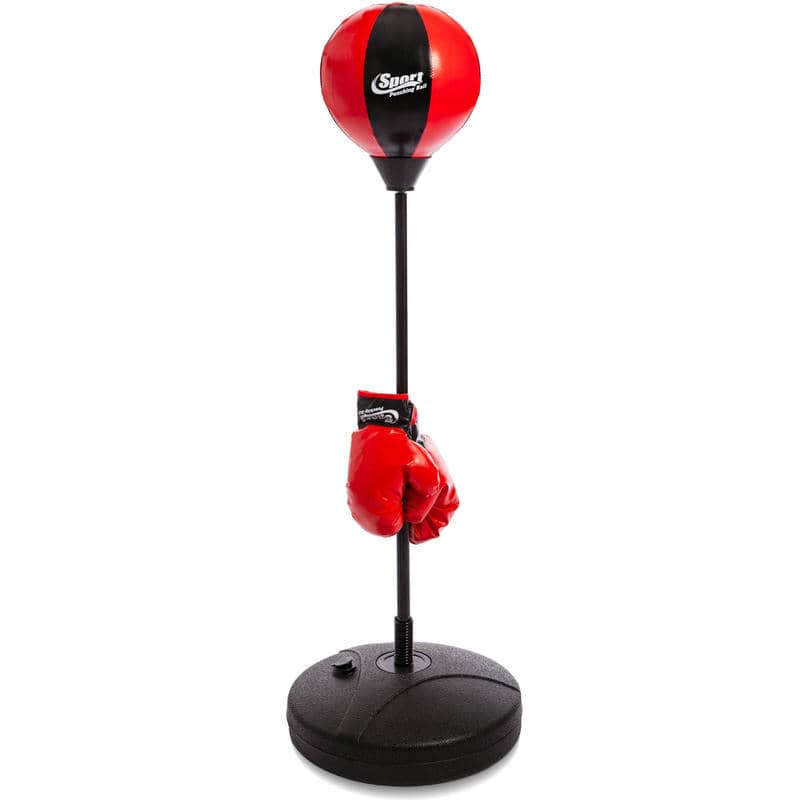 Дитячий набір для тренувань з боксу підійде для домашнього використання. У комплект входять рукавички та боксерська пневматична груша на стійці. Підлогову грушу можна переміщати по кімнаті, а також вона не вимагає використання спеціальних кріплень. Відповідно, в кімнаті не доведеться свердлити отвори в стелі чи підлозі.