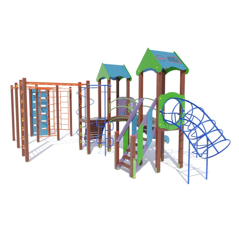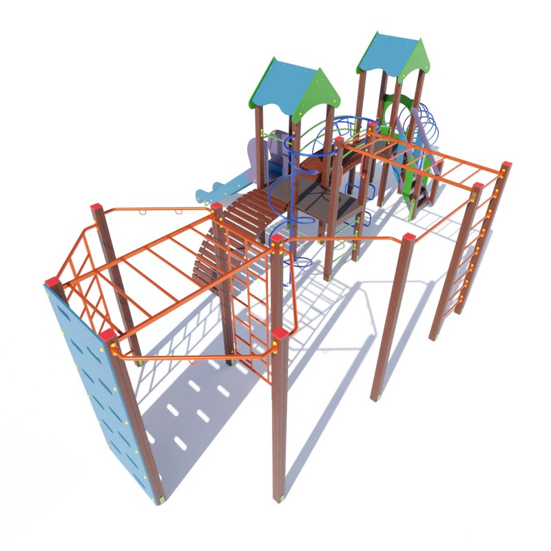 Ігрова частина моделі складається з двох веж, об'єднаних містком, радіального та ступінчастого підйому, спірального спуску, тунельного підйому/спуску, канатного підйому. Також обладнання доповнено такими гімнастичними елементами: рукоходи, шведська стінка, різнорівневі турніки, стінка-скелелазка, гімнастичні кільця, канат. На Ваші персональні побажання набір елементів може варіювати.