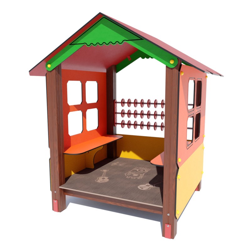 Будиночок DIO215.2HDPE з пластиковими панелями є прекрасним додатком до дитячих майданчиків або приватних подвір'їв, де діти зможуть насолоджуватися грою та активними заняттями у безпечному середовищі.