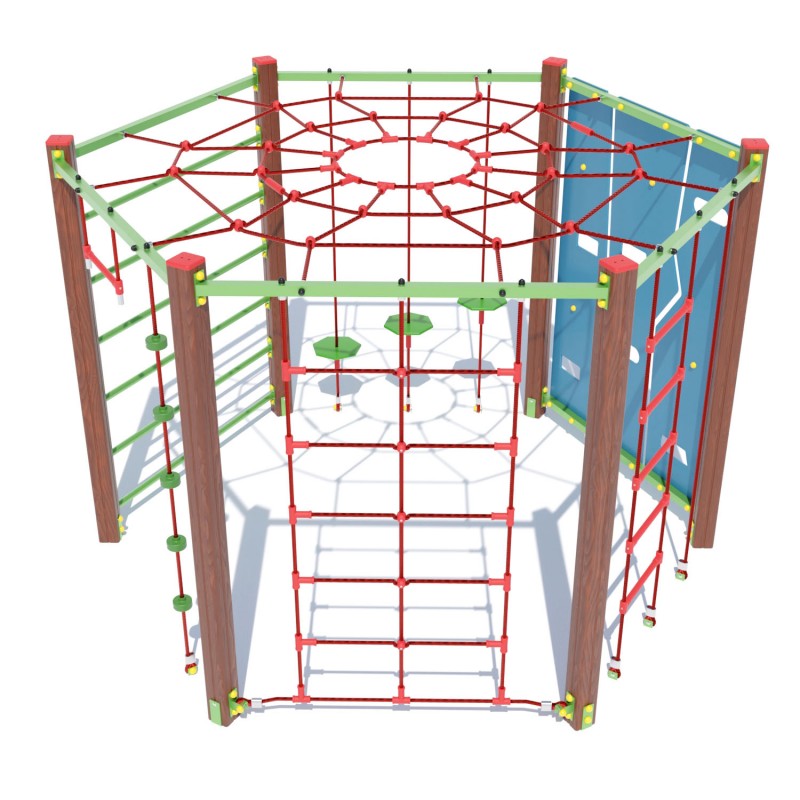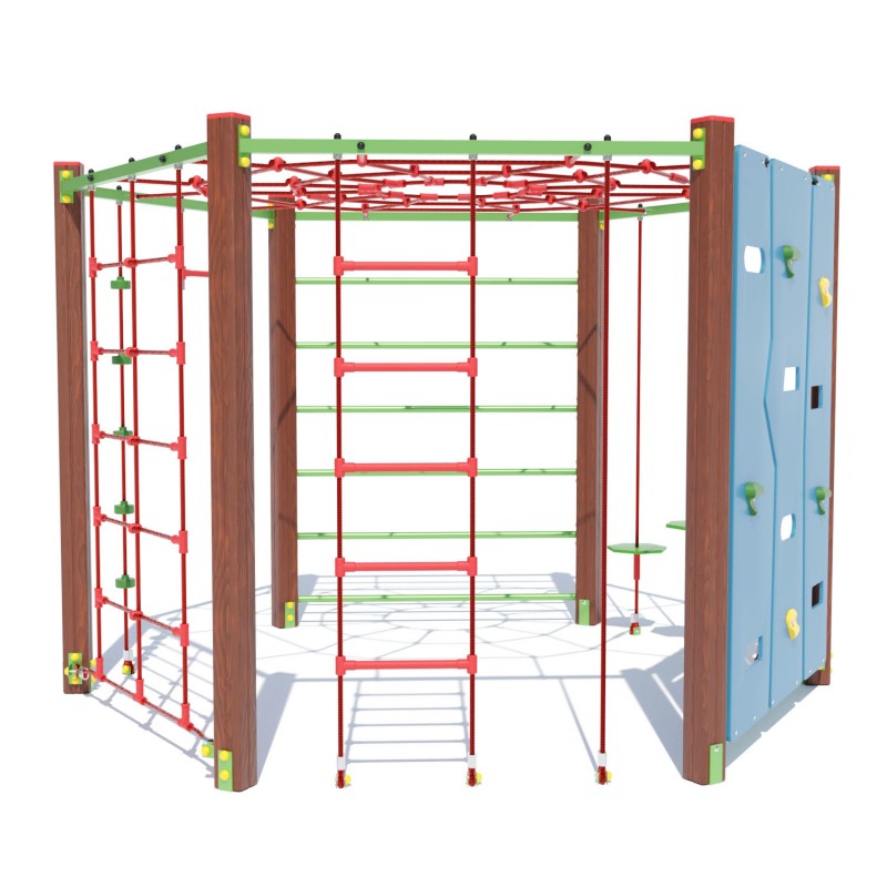 - Шестигранна форма: Унікальна геометрична форма гімнастичного комплексу надає йому стильний та сучасний вигляд.