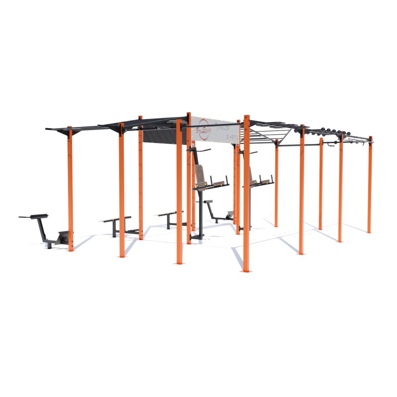 Спортивний комплекс Воркаут W255 призначений для розміщення у громадських місцях: стадіонах, парках, у дворах житлових будинків. Вуличні тренування – це доступний міський спорт, який сприяє фізичному розвитку тіла. Він складається з серії вправ на силу, гнучкість та рівновагу. Ці вправи виконуються з використанням лише власної ваги на турніках, брусах та тренажерах, встановлених на різній висоті. З таким спортивним обладнанням Ви можете виконувати підтягування, віджимання, присідання.