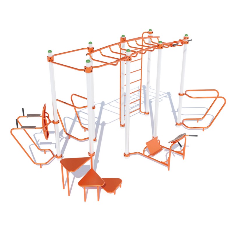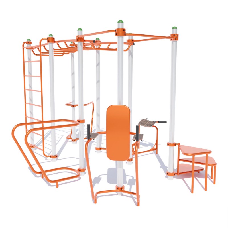 Спортивний комплекс Воркаут W254 призначений для розміщення у громадських місцях: стадіонах, парках, у дворах житлових будинків. Вуличні тренування – це доступний міський спорт, який сприяє фізичному розвитку тіла. Він складається з серії вправ на силу, гнучкість та рівновагу. Ці вправи виконуються з використанням лише власної ваги на турніках, брусах та тренажерах, встановлених на різній висоті. З таким спортивним обладнанням Ви можете виконувати підтягування, віджимання, присідання.