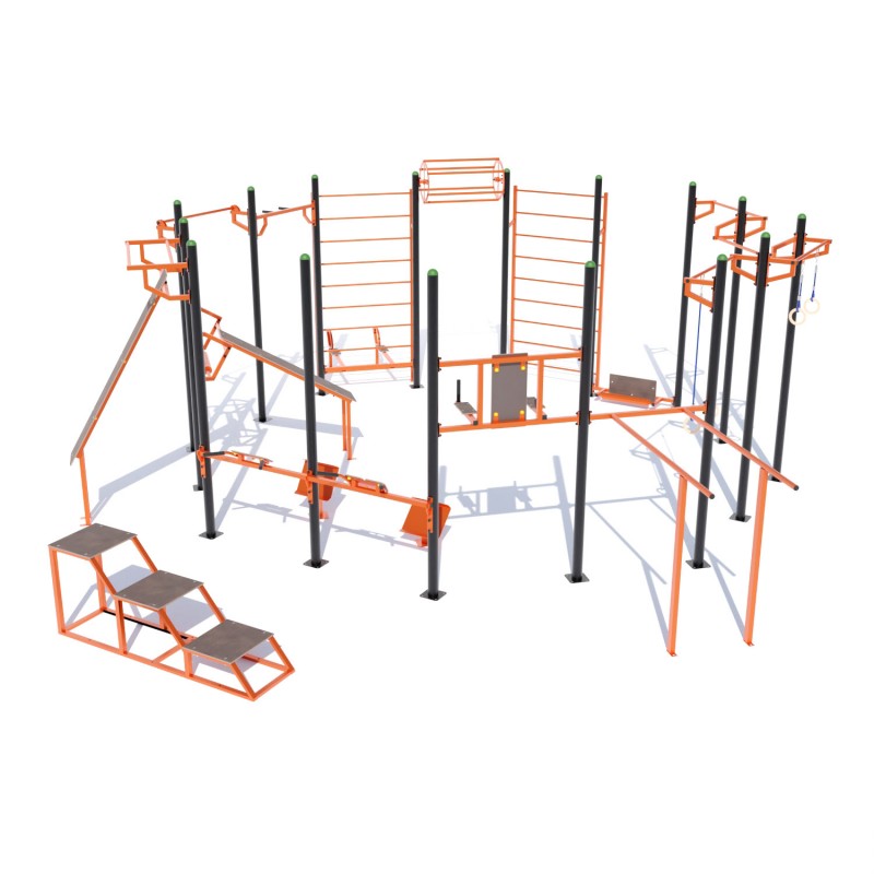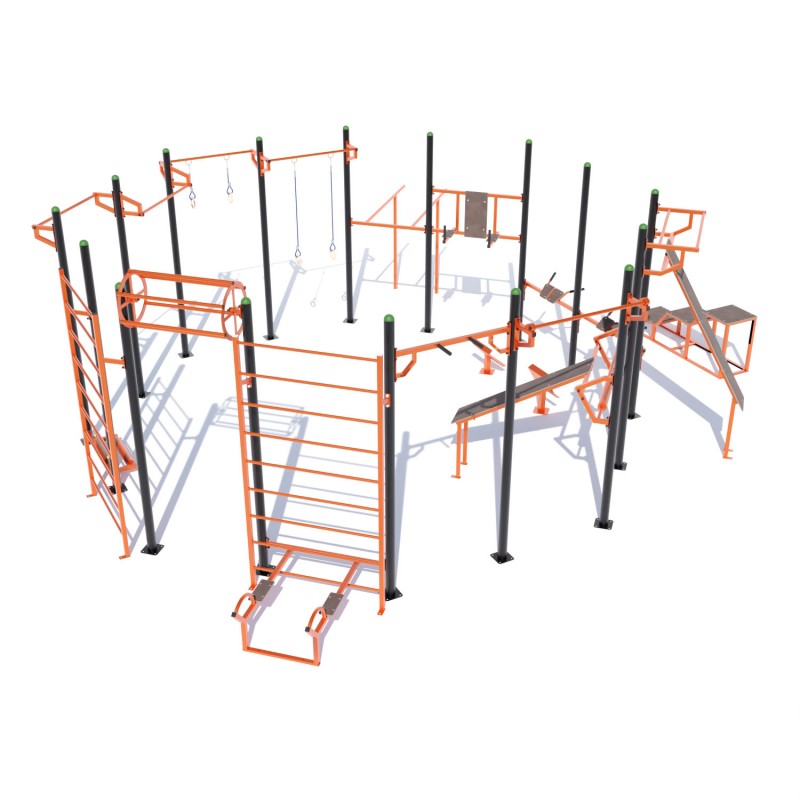 Спортивний комплекс Воркаут W256 призначений для розміщення у громадських місцях: стадіонах, парках, у дворах житлових будинків. Вуличні тренування – це доступний міський спорт, який сприяє фізичному розвитку тіла. Він складається з серії вправ на силу, гнучкість та рівновагу. Ці вправи виконуються з використанням лише власної ваги на турніках, брусах та тренажерах, встановлених на різній висоті. З таким спортивним обладнанням Ви можете виконувати підтягування, віджимання, присідання.