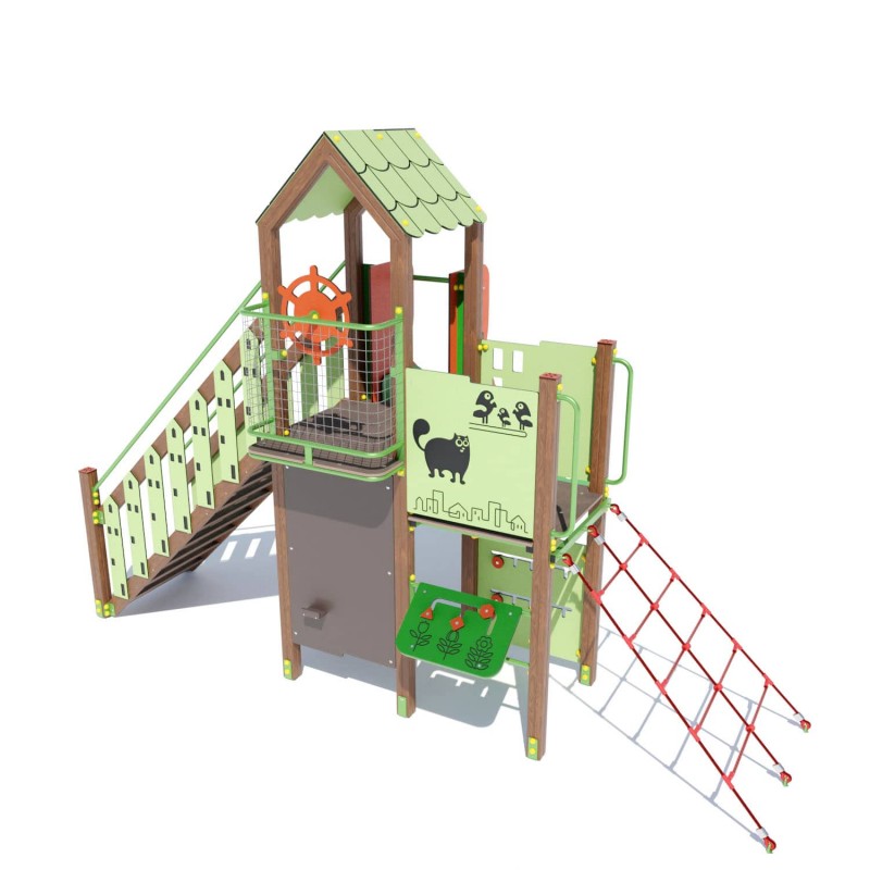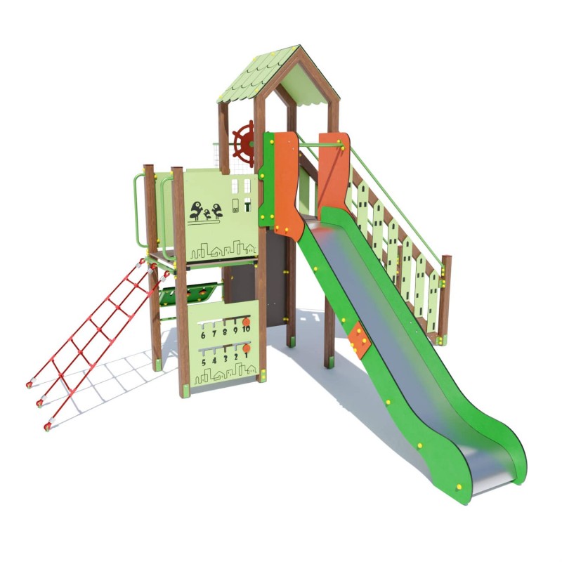Ігровий комплекс "Радість" DIO805.4 – це ідеальне рішення для облаштування дитячих майданчиків, яке поєднує в собі безпеку, функціональність та яскравий дизайн. Цей комплекс пропонує дітям різноманітні можливості для активних ігор та розвитку, включаючи спускові гірки, канатні сходи, інтерактивні панелі з малюнками та навчальними елементами. Всі компоненти виготовлені з високоякісних матеріалів, що забезпечують стійкість до зовнішніх впливів та довговічність.