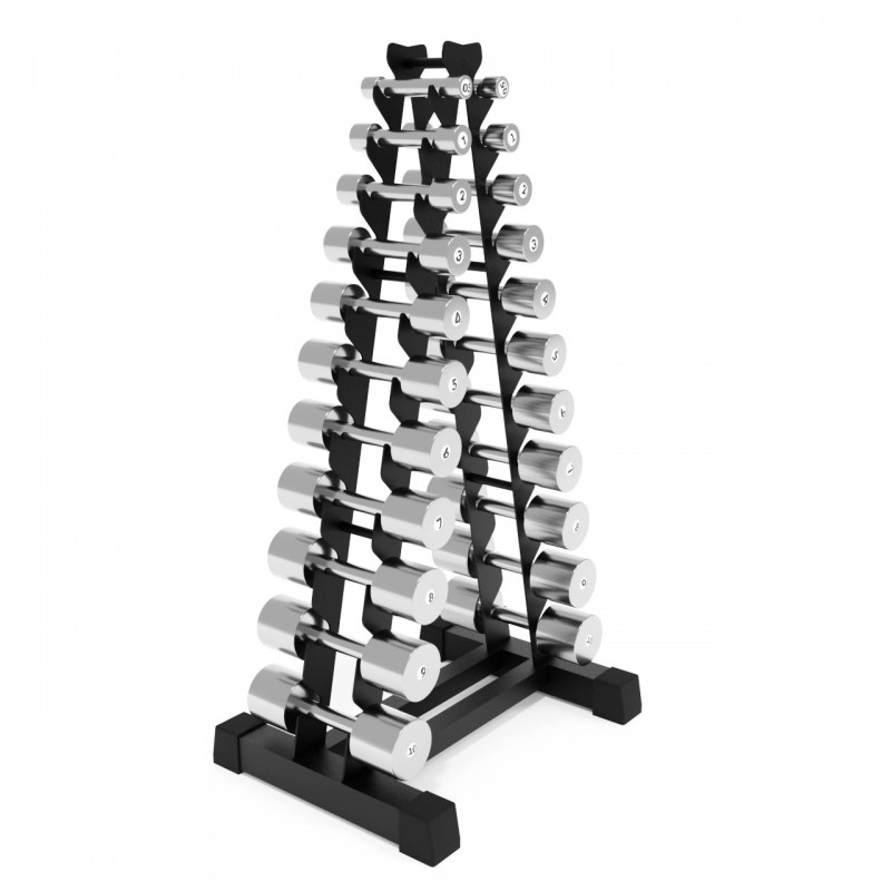 Хромовані гантелі зі стійкою Brustyle 11 пар (0,5-10 кг), 610х480х1150 мм, код: TC135