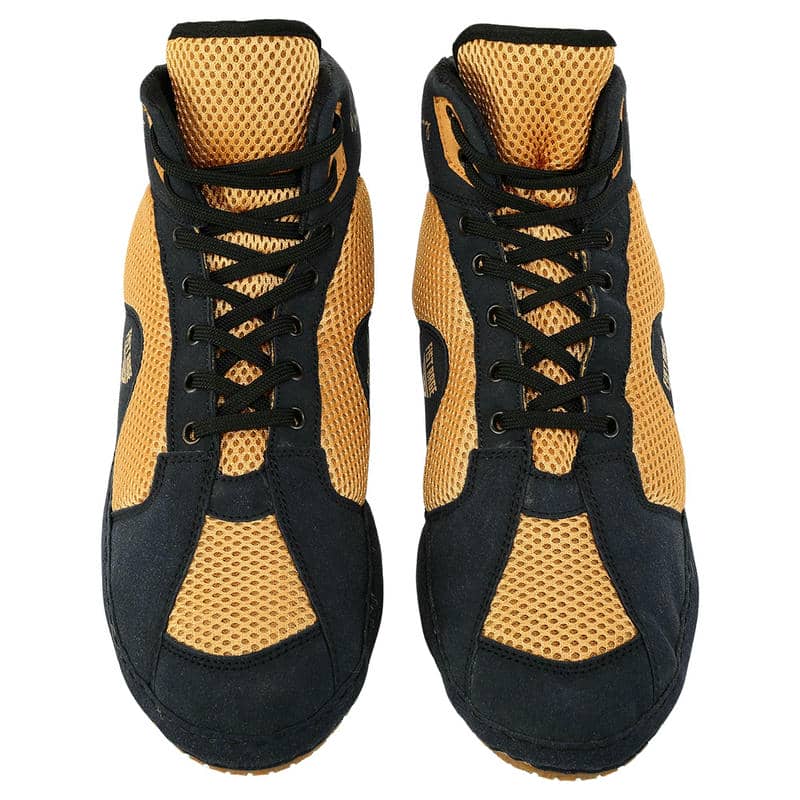 Головна перевага моделі – високий профіль із посиленою шнурівкою, який щільно фіксує гомілкостоп, знижуючи ризик травм і покращуючи контроль рухів. Підошва виготовлена з нековзної гуми (RB) із рельєфною текстурою, що забезпечує максимальне зчеплення з поверхнею рингу, запобігаючи небажаному ковзанню.