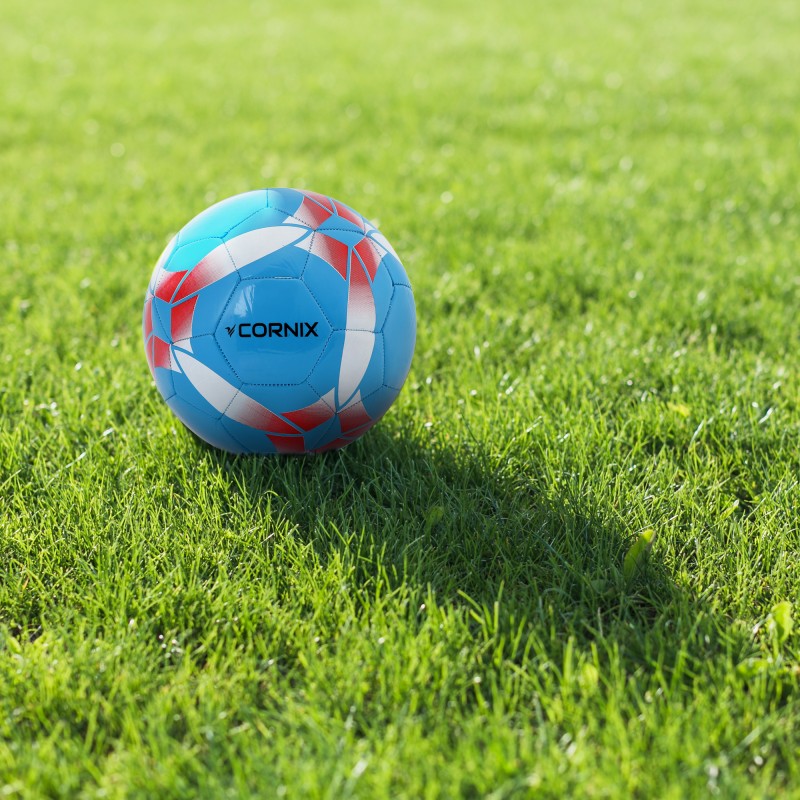 Футбольний м’яч від Cornix виготовлений з високоякісного термопластичного поліуретану (TPU) товщиною 3.5 мм, що забезпечує оптимальну витривалість та стійкість до деформації навіть під час інтенсивного використання. Гладка поверхня покращує аеродинамічні властивості та дозволяє краще контролювати снаряд під час дриблінгу, ударів або передач. Розмір 5 (діаметр 21.5 см) та вага 400-420 грамів повністю відповідають стандартам FIFA, забезпечуючи стабільність польоту та комфорт під час гри. Внутрішня бутилова камера зберігає оптимальний тиск, що гарантує м’який відскок і тривалий термін служби. Ручна зшивка панелей виконана з увагою до деталей та контролем на кожному етапі: від натягу нитки до щільності з'єднання.