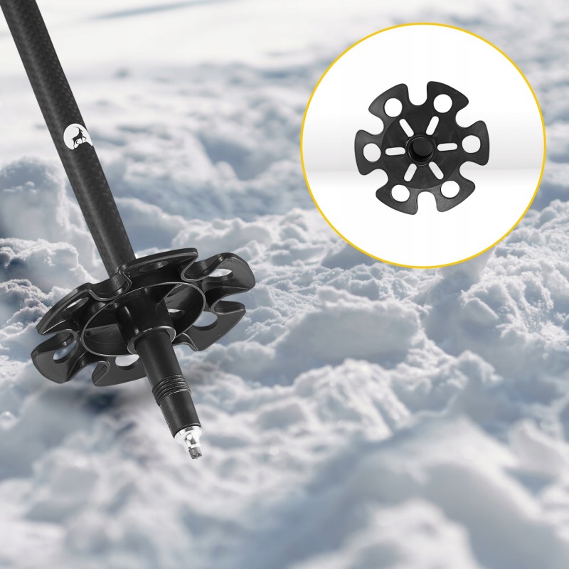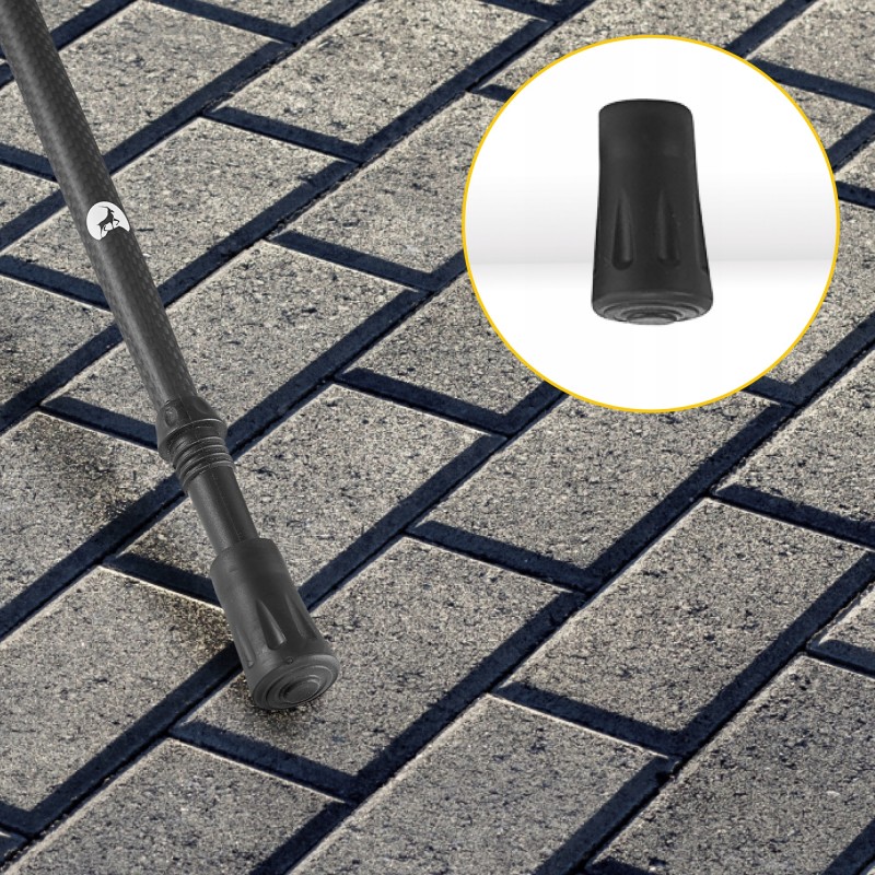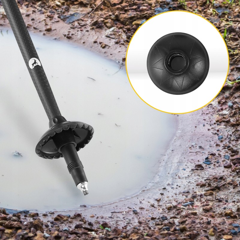 В комплекті передбачені наконечники для будь-якої погоди: на сухому ґрунті використовуйте стальний наконечник; за вологої погоди встановіть додаткові кільця, що унеможливлять застрявання наконечника в багнюці; за сніжної погоди використовуйте кільця збільшеного діаметра, які дадуть кращу стійкість навіть на великому сніжному покрові; для гравію, асфальтованої поверхні, прогулянок містом та парками не забувайте одягати на стальні наконечники гумові ковпачки.